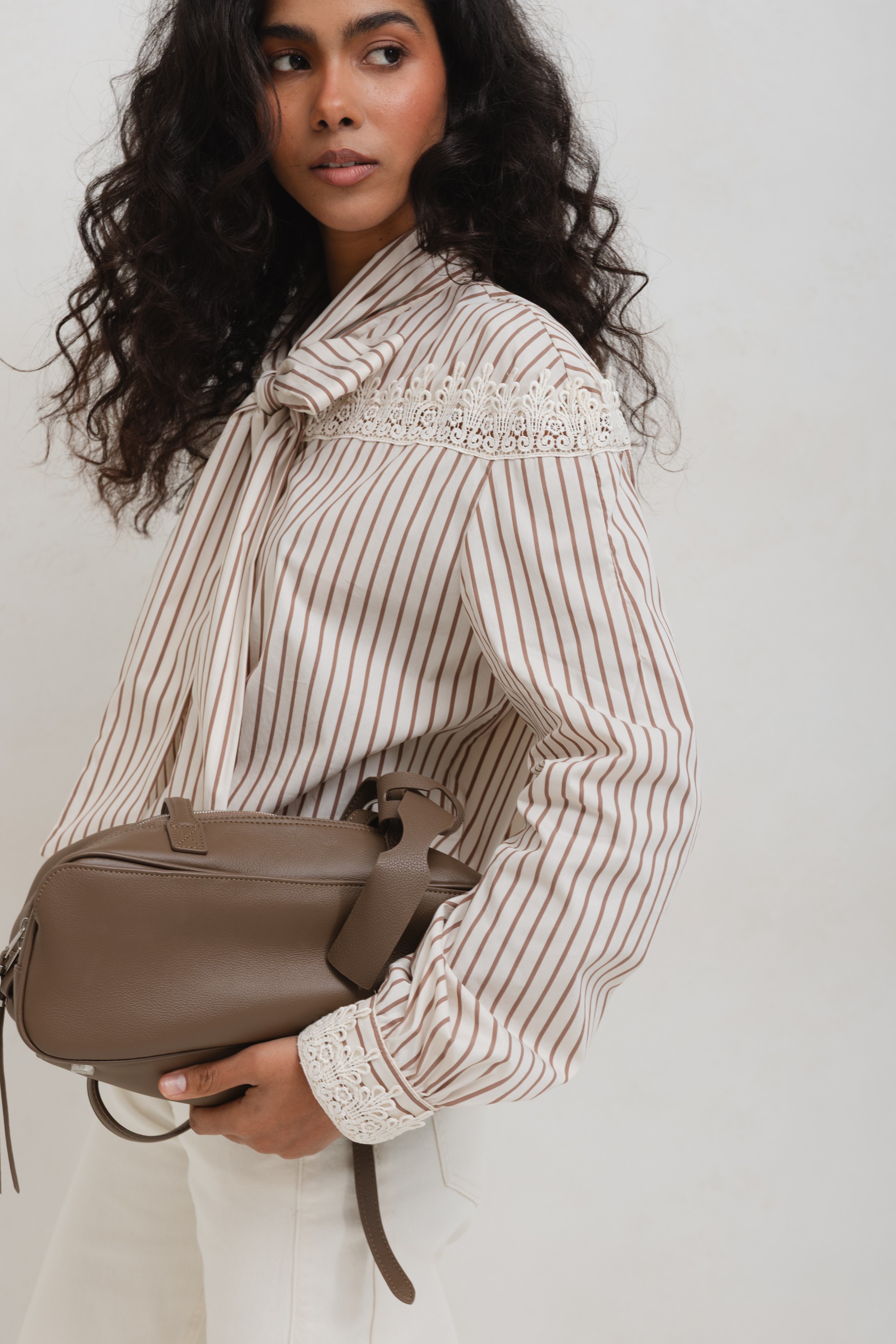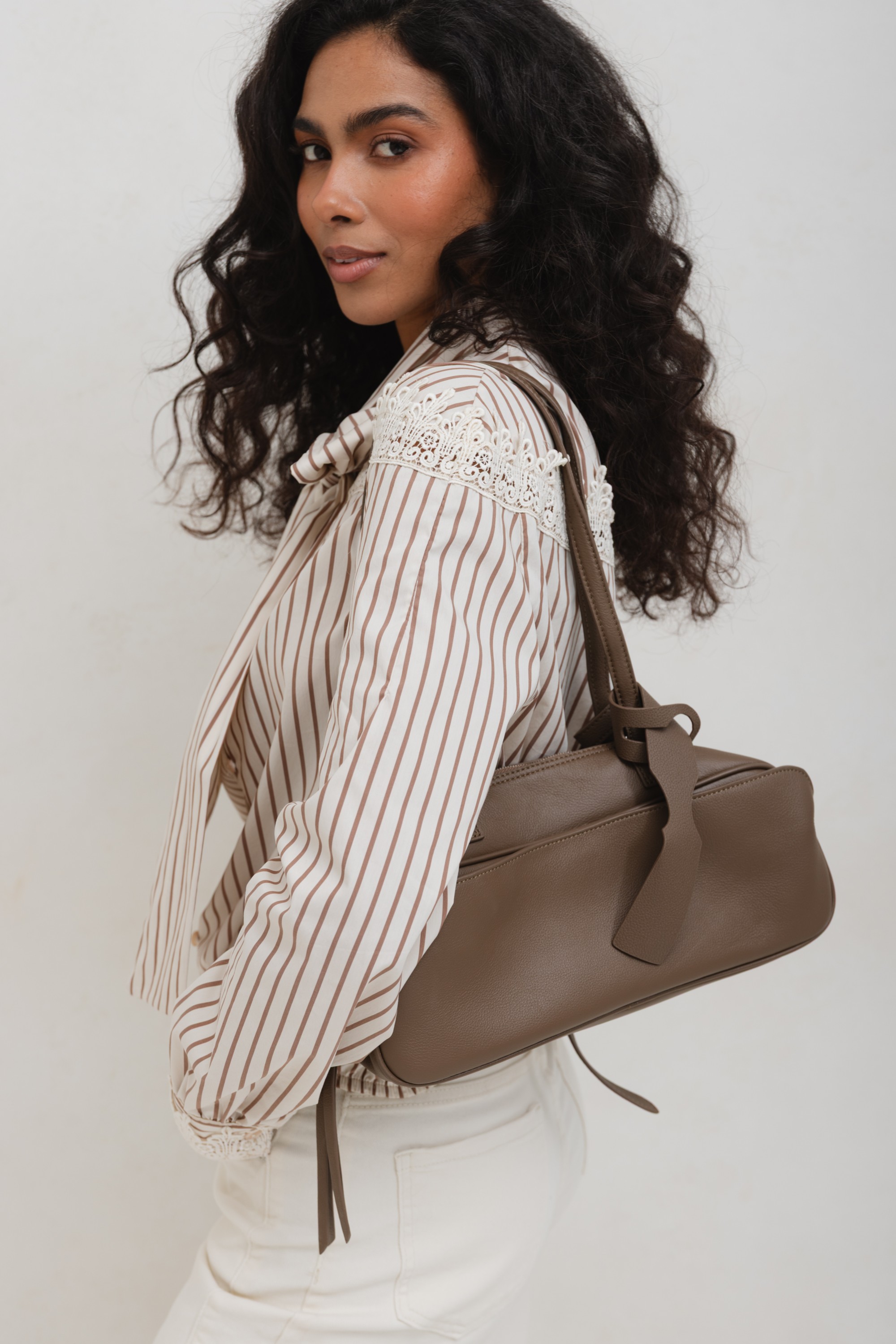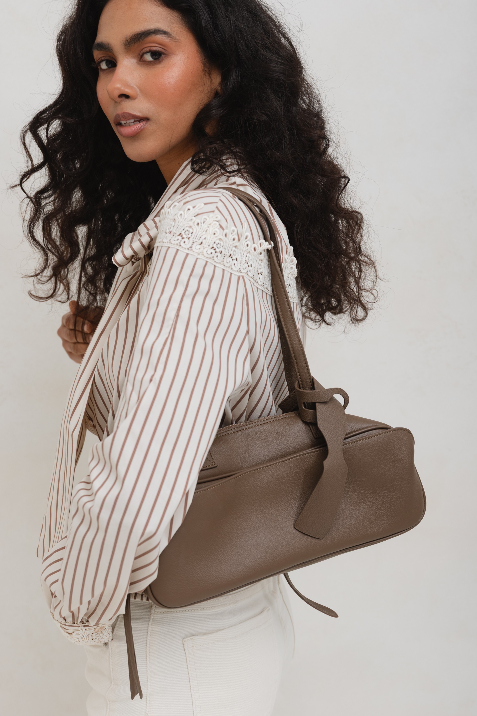 • Leather Bowling Mocha Bag