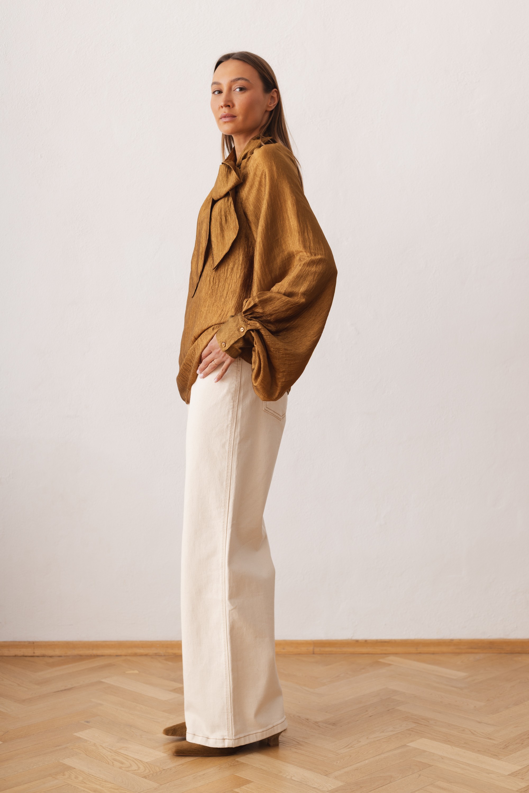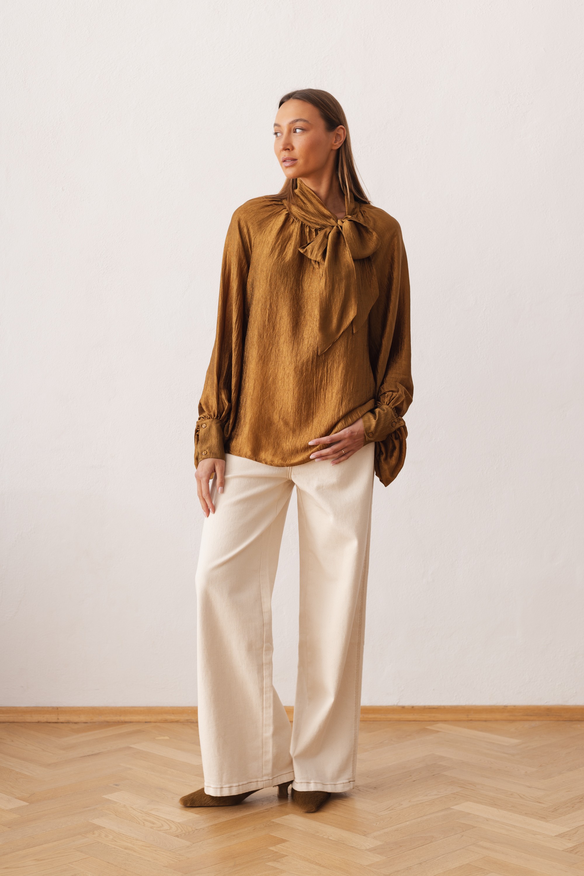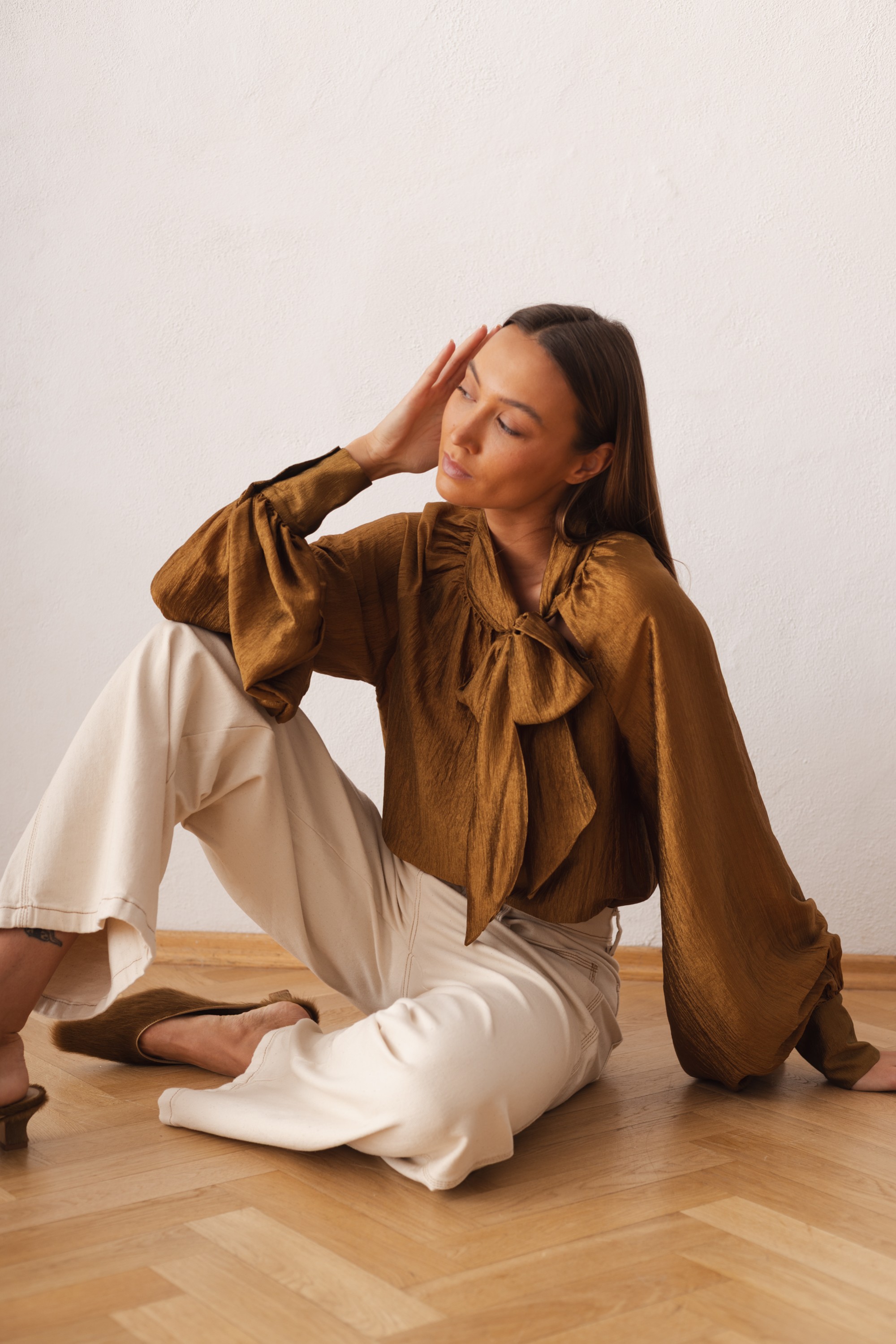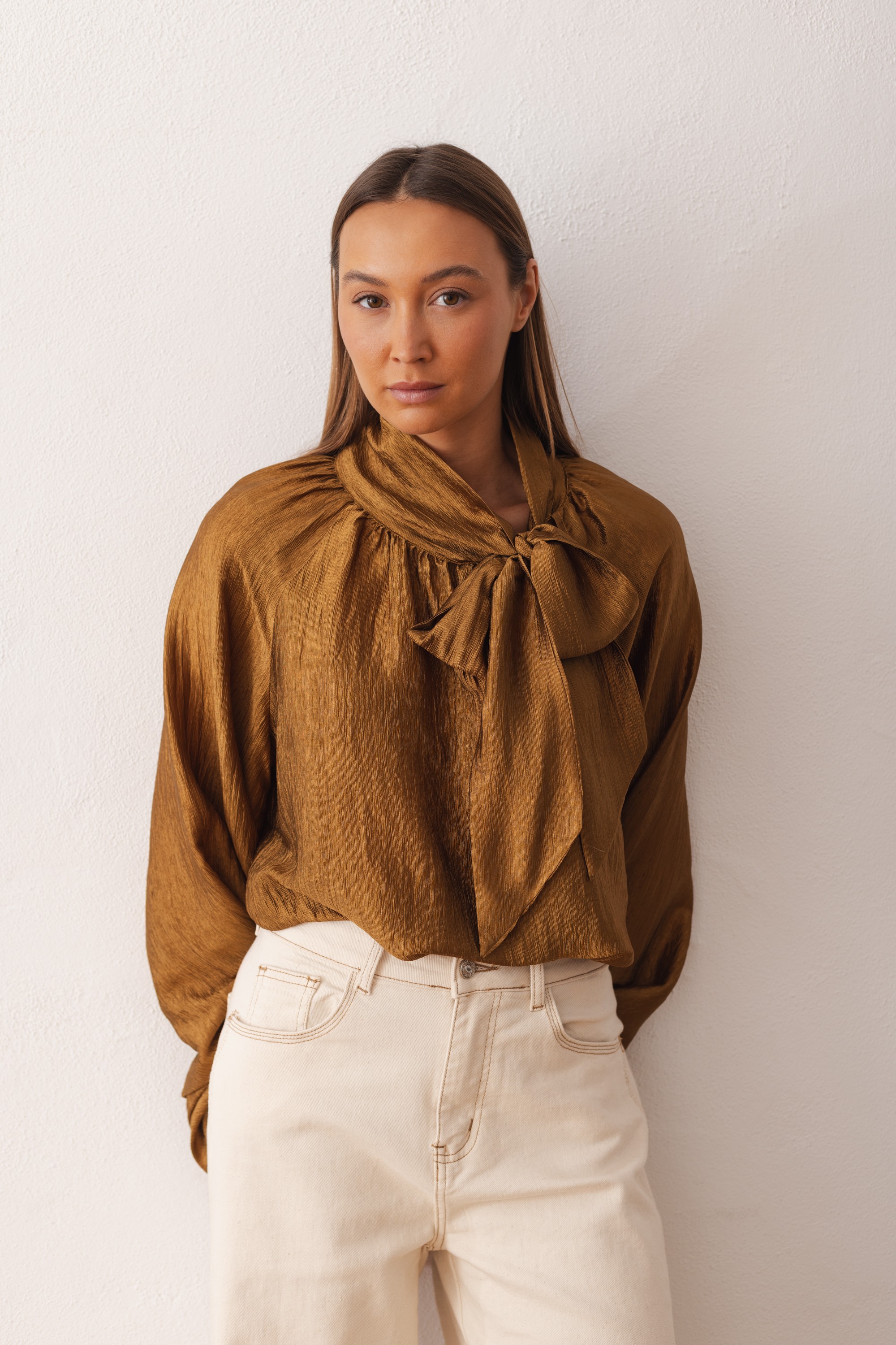 • Maja Bluzka Z Wiązaniem Golden Brown