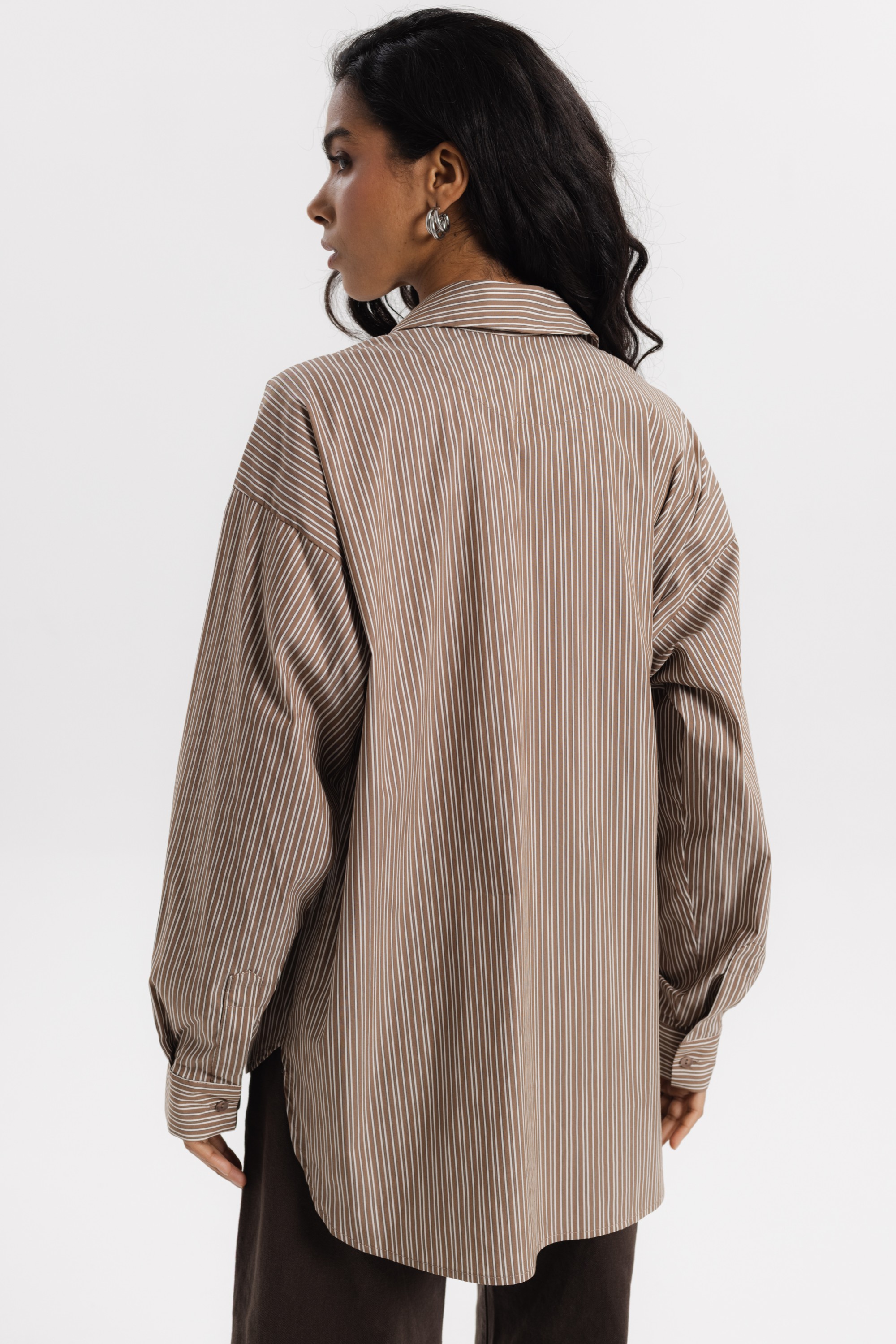 A loose-fitting shirt with a subtle, vertical stripe, in warm, natural colors. Made of a lightweight, soft-touch fabric, it provides comfort and freedom of movement all day long.