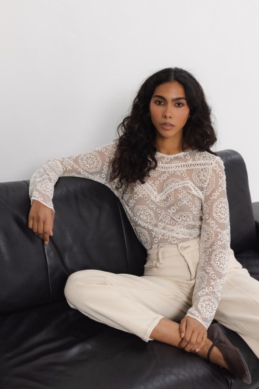 A cropped sweatshirt with a striking "bubble" finish. Long raglan sleeves, a loose fit, and a round neckline make it a comfortable everyday piece.