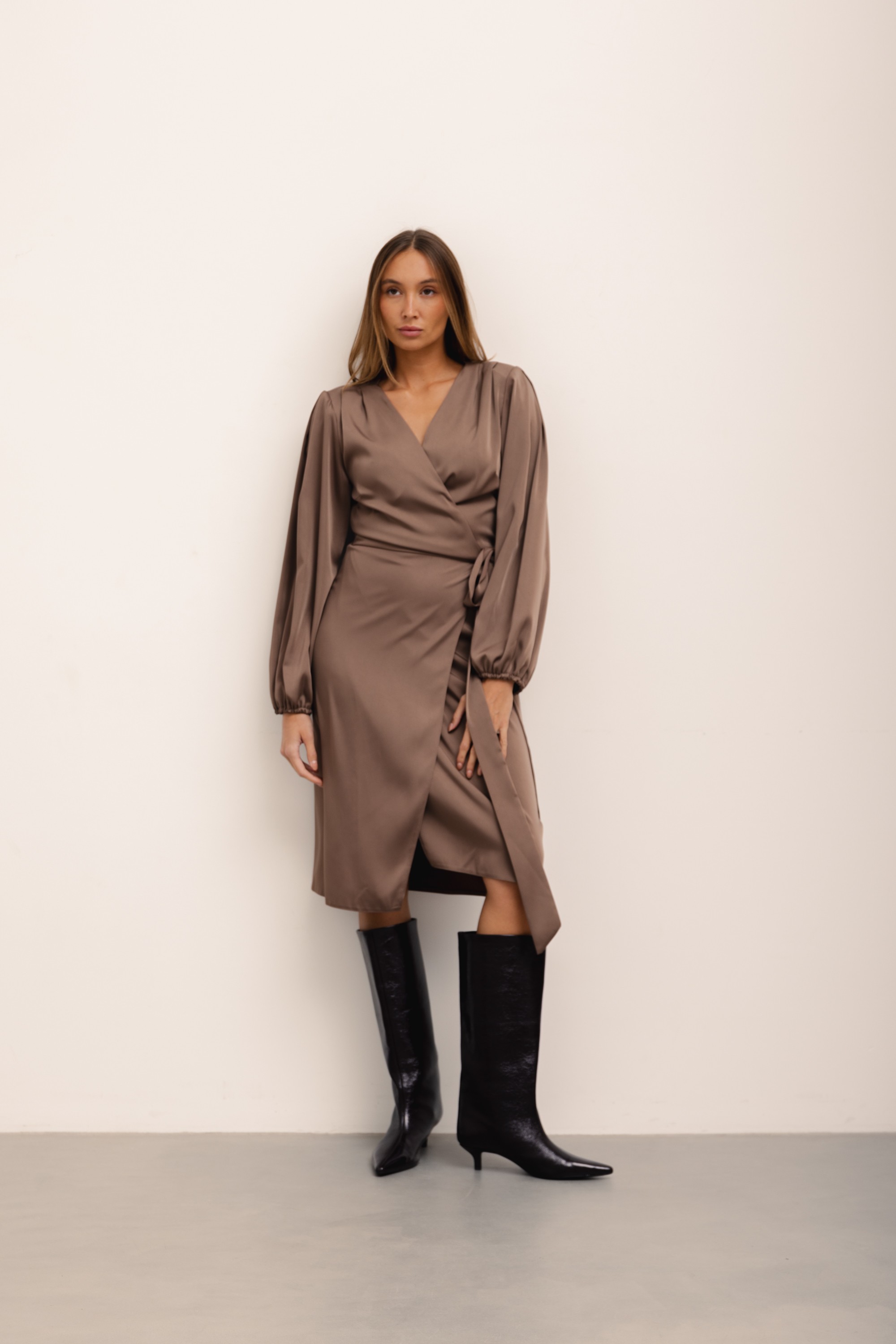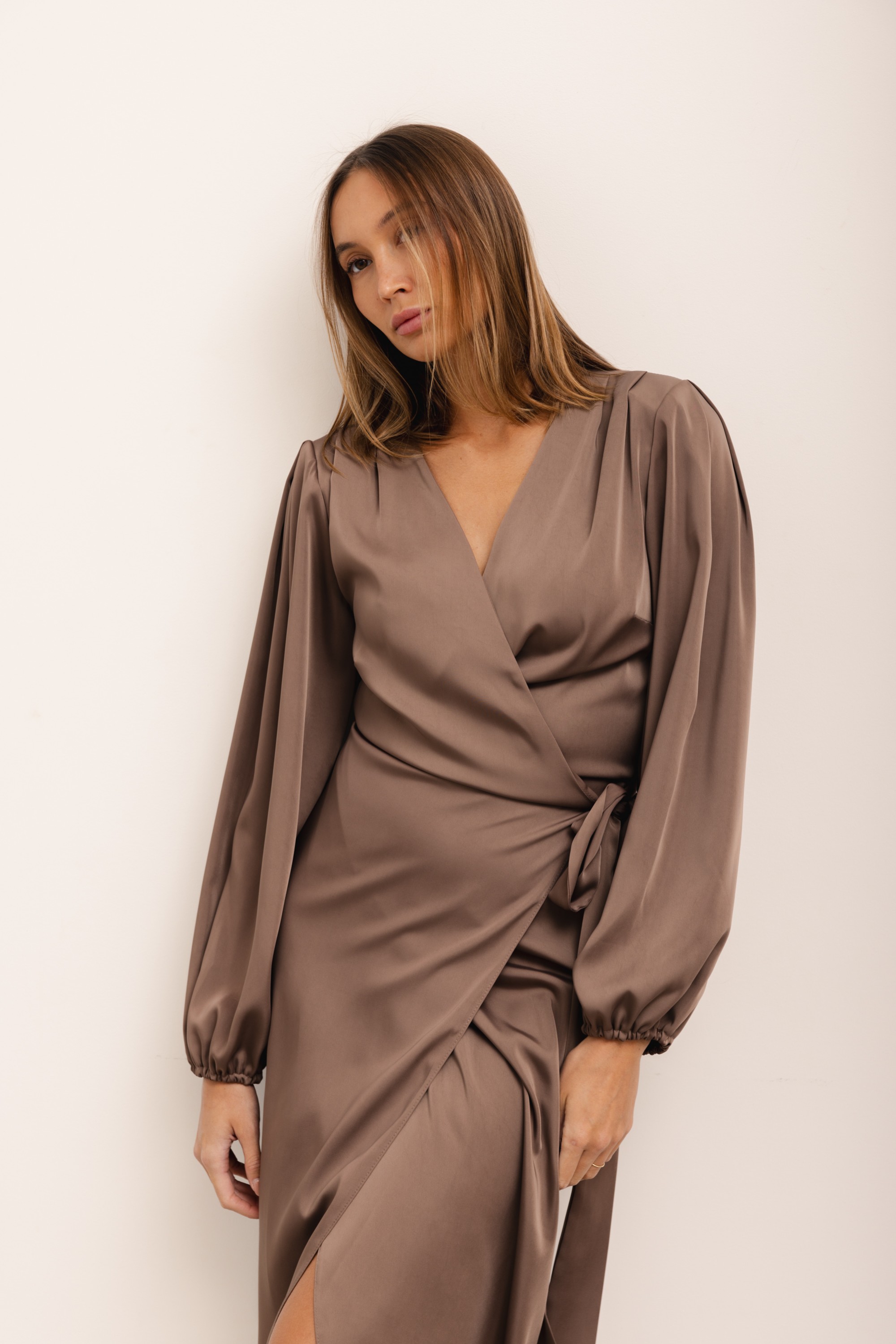 Klara Sukienka Satynowa Caffe Latte