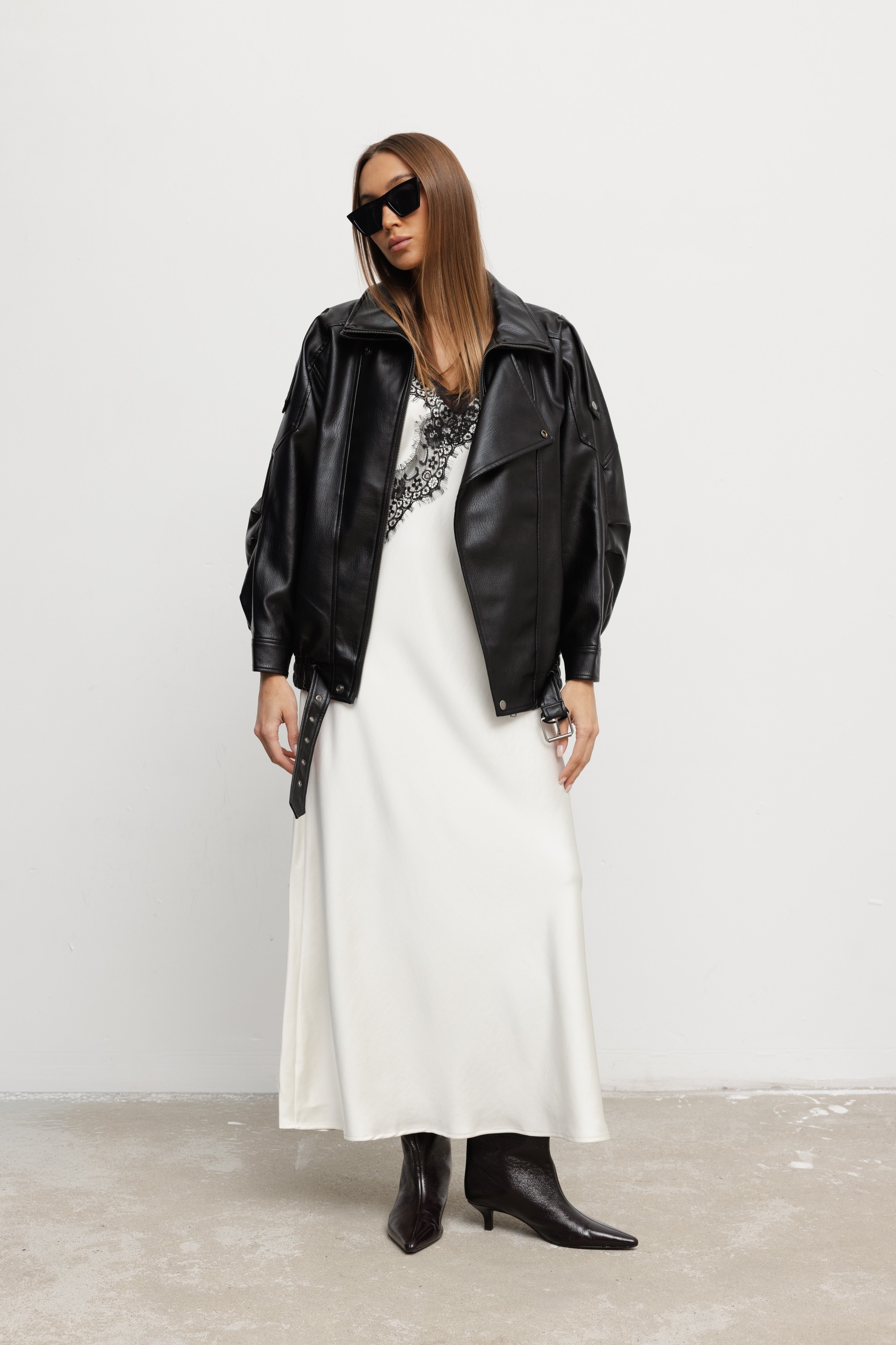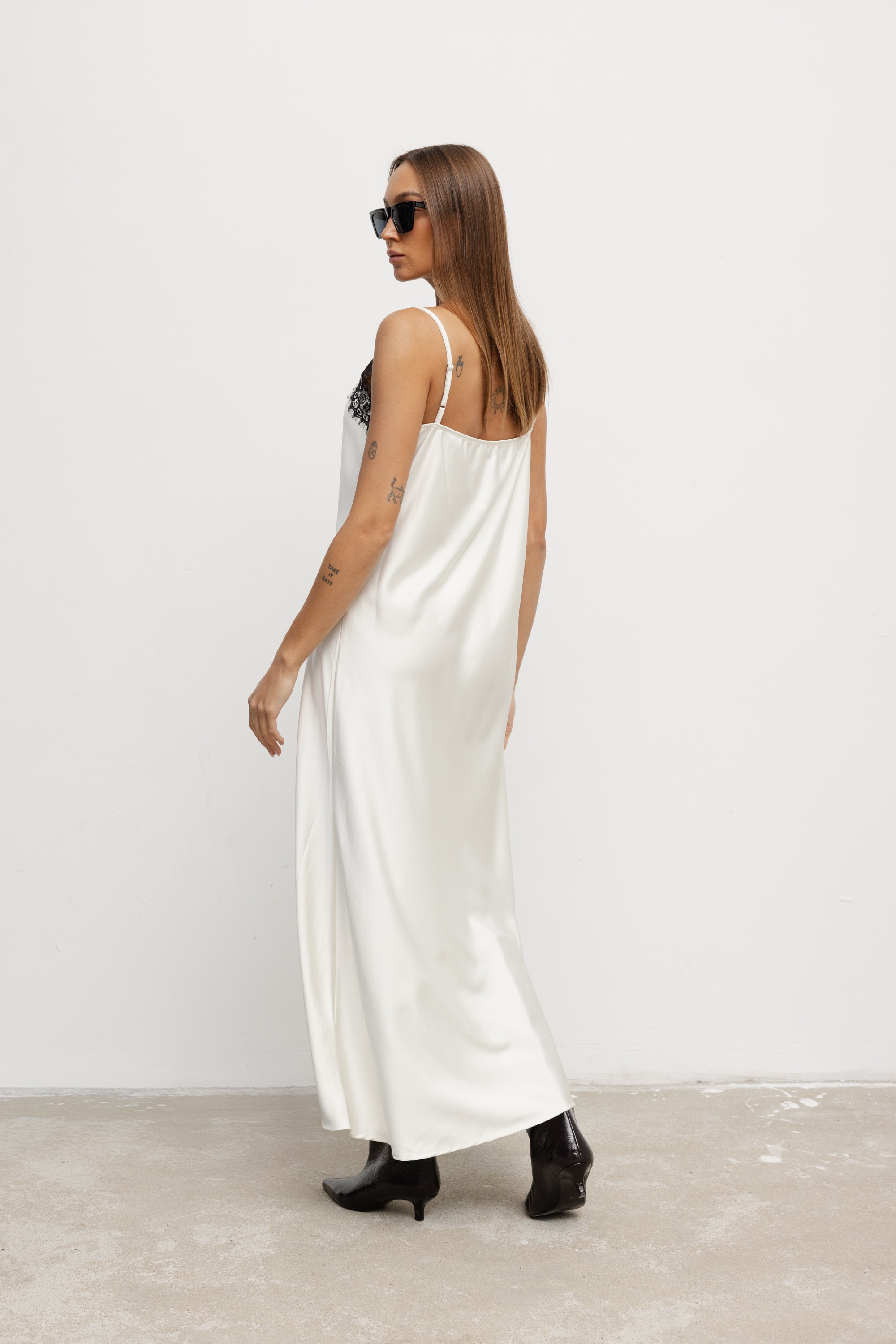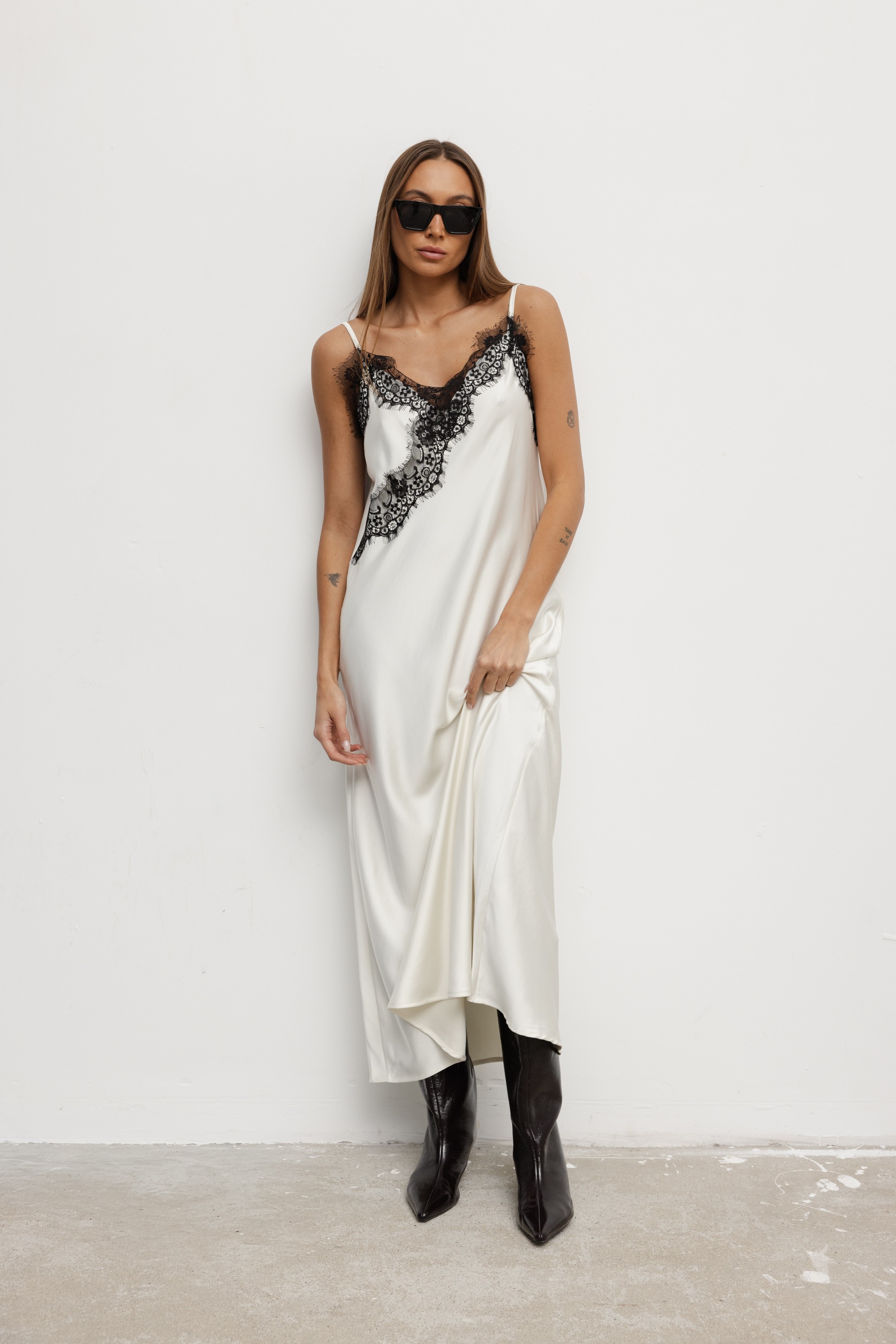 Corinne Sukienka Satynowa Z Koronką Ecru