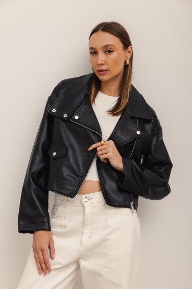 5862 Kurtka Jeansowa Z Falbaną Czarna
