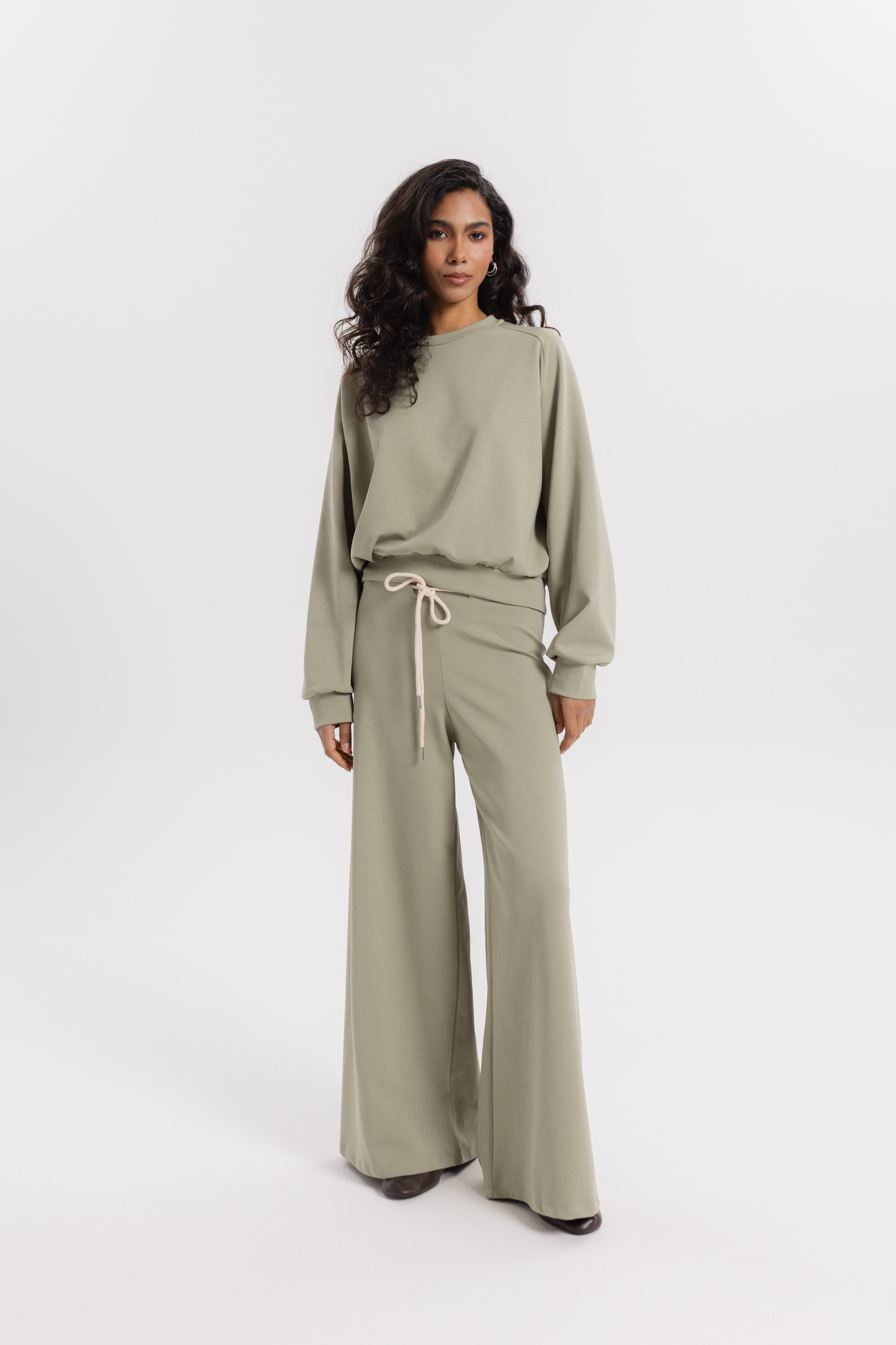 Wide-leg trousers that combine comfort with a modern design. Made of soft fabric, they fit perfectly and allow for ease of movement.