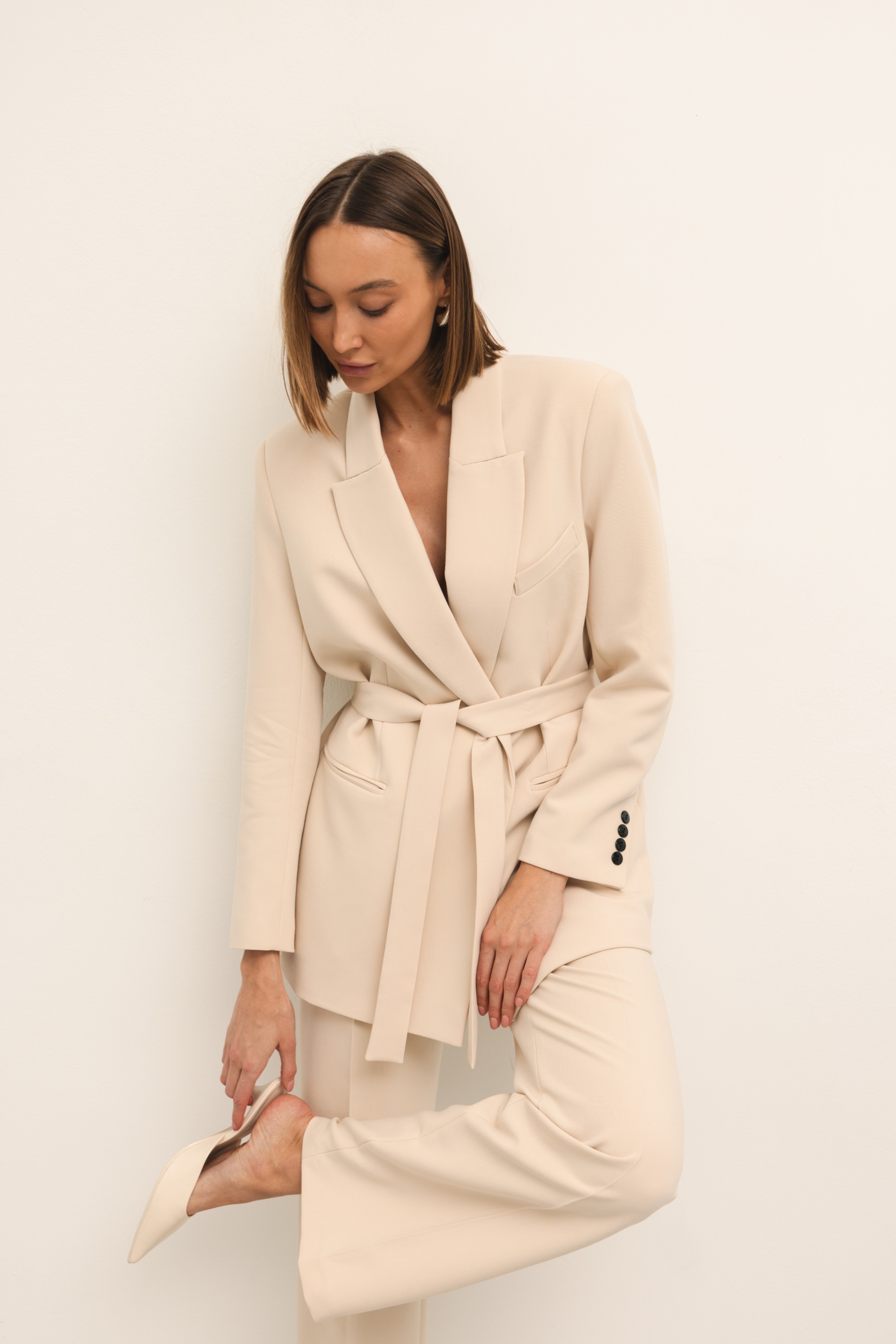 • Simone Marynarka Z Wiązaniem Beż