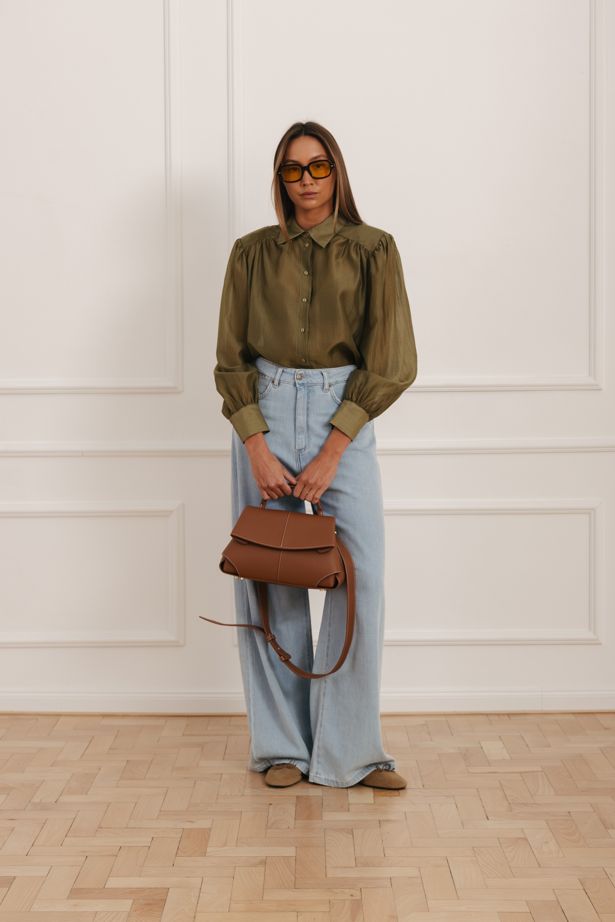 Elegancka torebka wykonana z wysokiej jakości naturalnej skóry, wyróżniająca się minimalistyczną formą i dopracowanymi detalami. Klasyczna klapa z subtelnym przeszyciem nadaje jej uporządkowany, ponadczasowy charakter, a usztywniona konstrukcja sprawia, że model zachowuje swój kształt niezależnie od zawartości.
