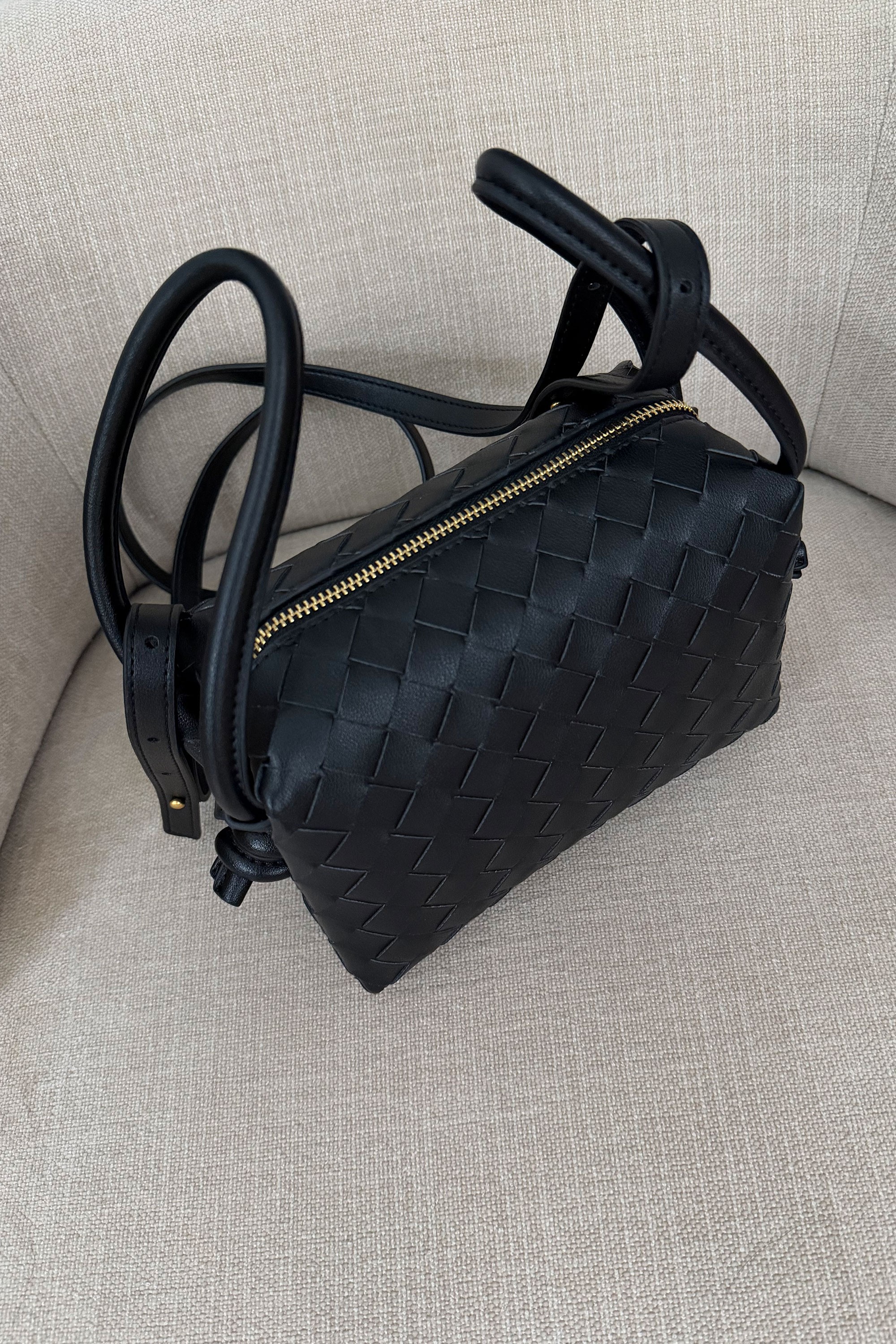 Skórzana Torebka Z Plecionym Wykończeniem Czarna