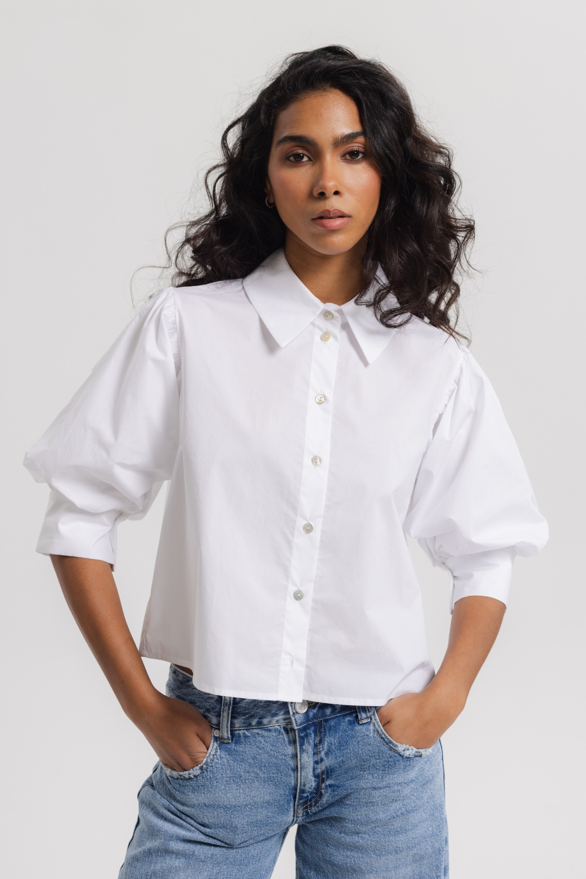 Klasyka w nowoczesnym wydaniu. Koszula Zafira to ponadczasowa biel przełamana subtelną formą – lekko skrócony fason i efektowne, bufiaste rękawy nadają jej wyjątkowego charakteru. Minimalistyczna, a jednocześnie wyrazista, doskonale odnajdzie się zarówno w codziennych stylizacjach z denimem, jak i w bardziej eleganckich zestawach.