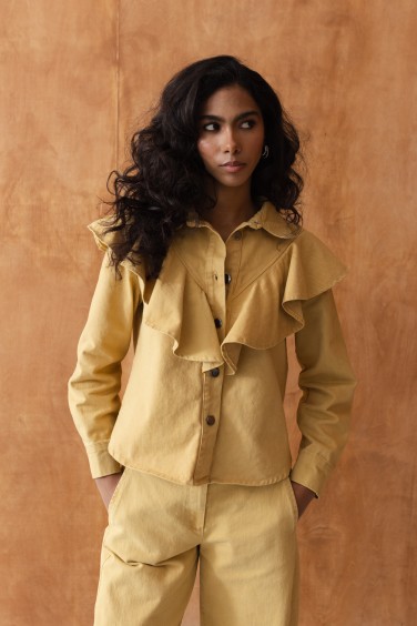 95056 Koszula Jeansowa Z Falbaną Yellow