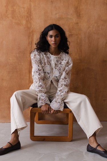 Ursula Koszula Z Ozdobnym Haftem Beż
