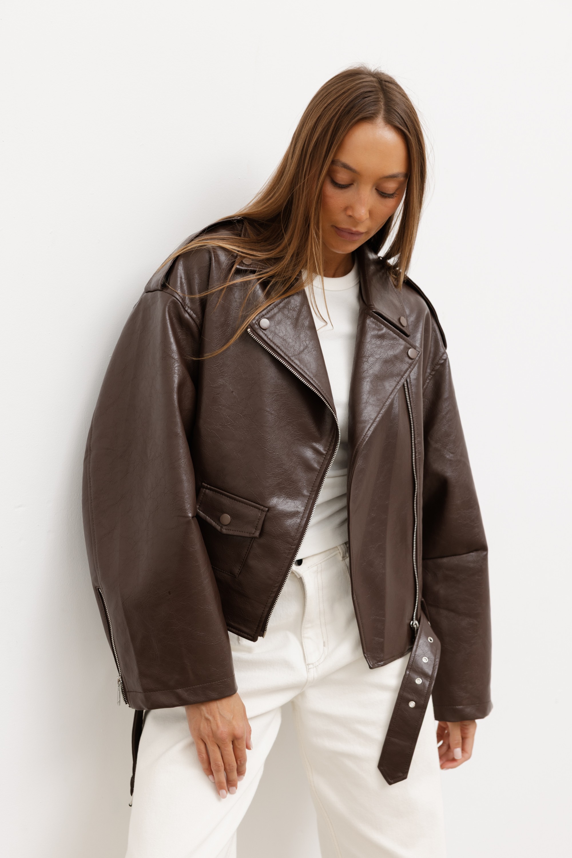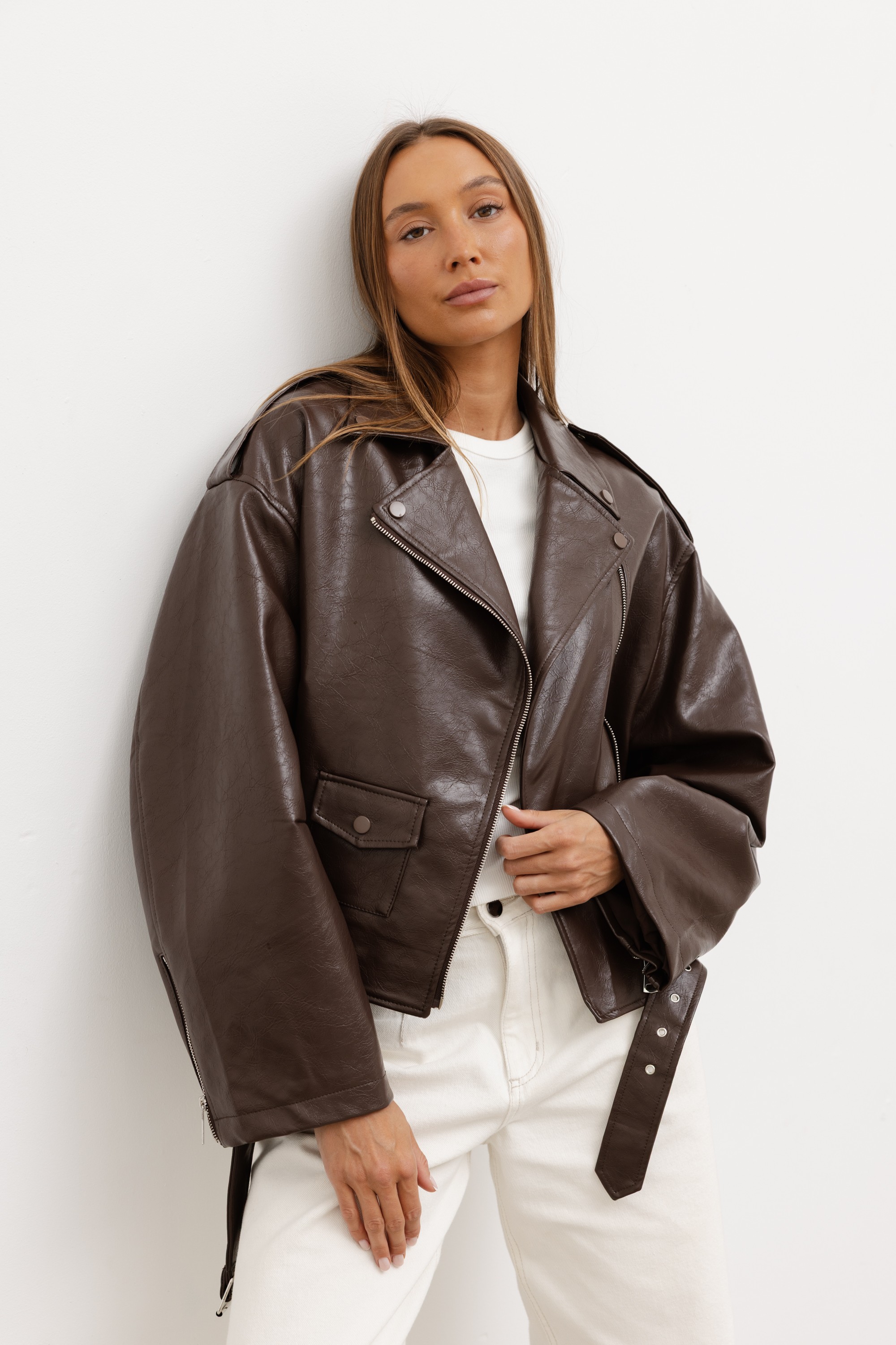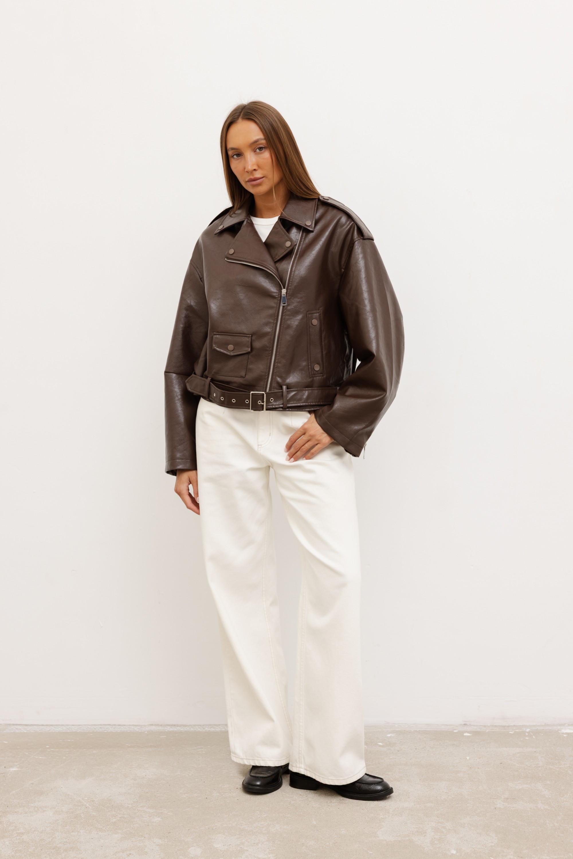 Klasyczna ramoneska w nowoczesnym wydaniu, uszyta z wysokiej jakości ekoskóry. Charakterystyczny krój z asymetrycznym zamkiem, dużymi klapami i paskiem w talii dodaje całości rockowego charakteru. Luźniejszy fason sprawia, że kurtka świetnie wygląda zarówno w casualowych, jak i bardziej wyrazistych stylizacjach.