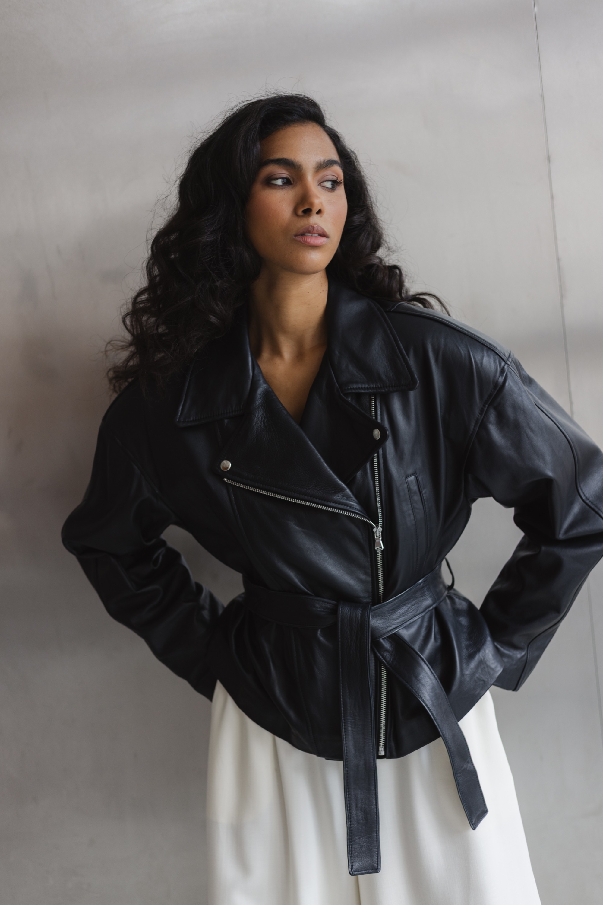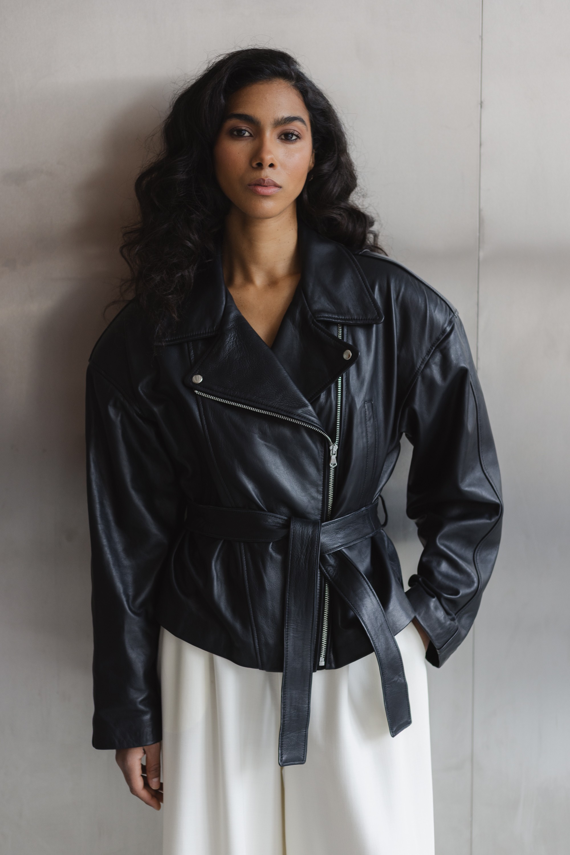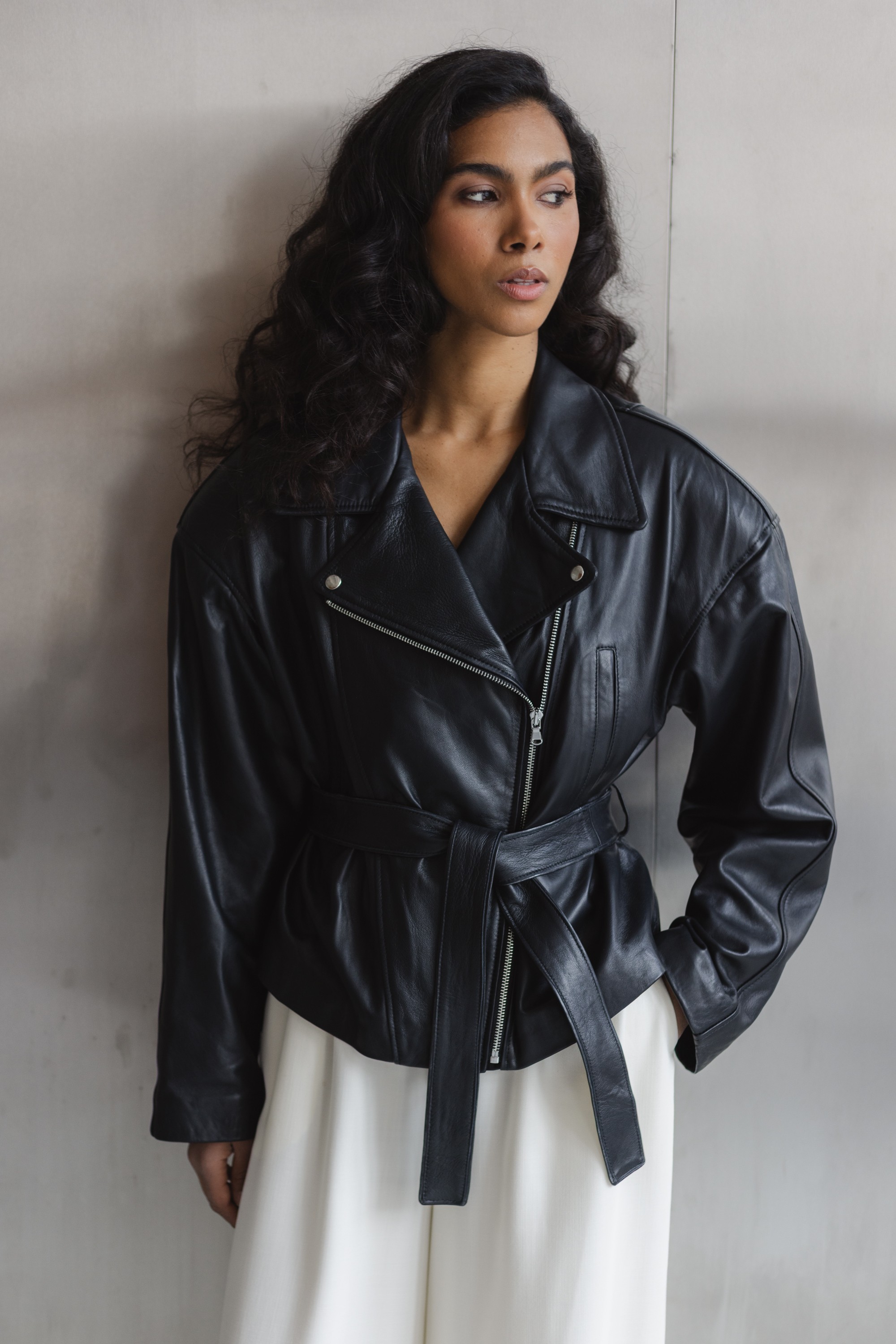 Patrice Kurtka Skórzana Z Wiązaniem Czarna