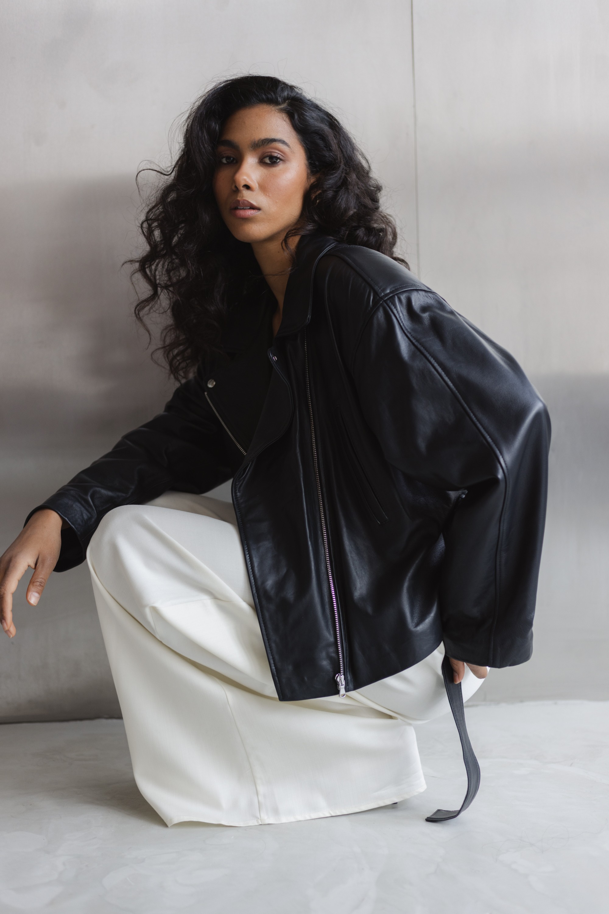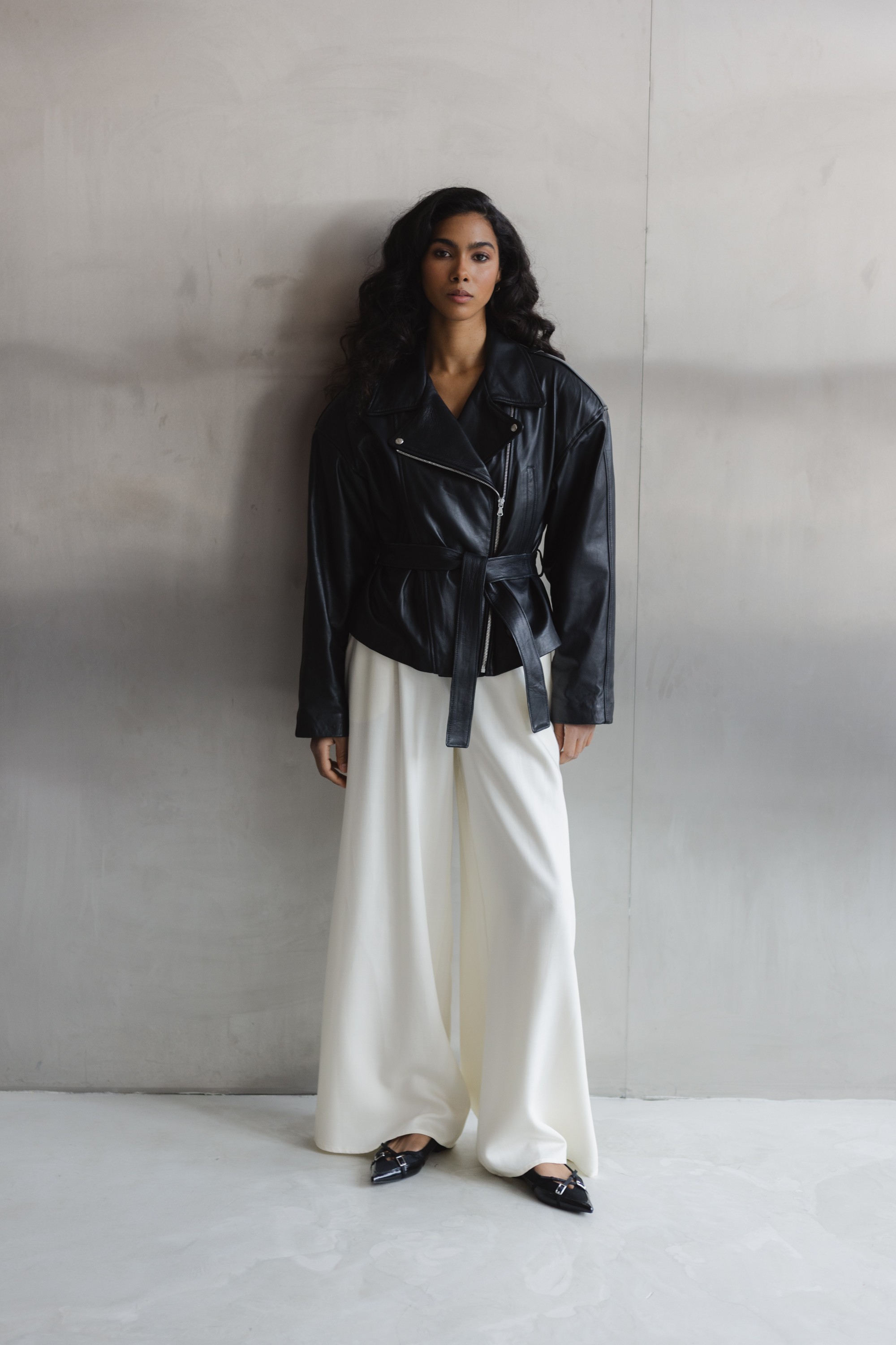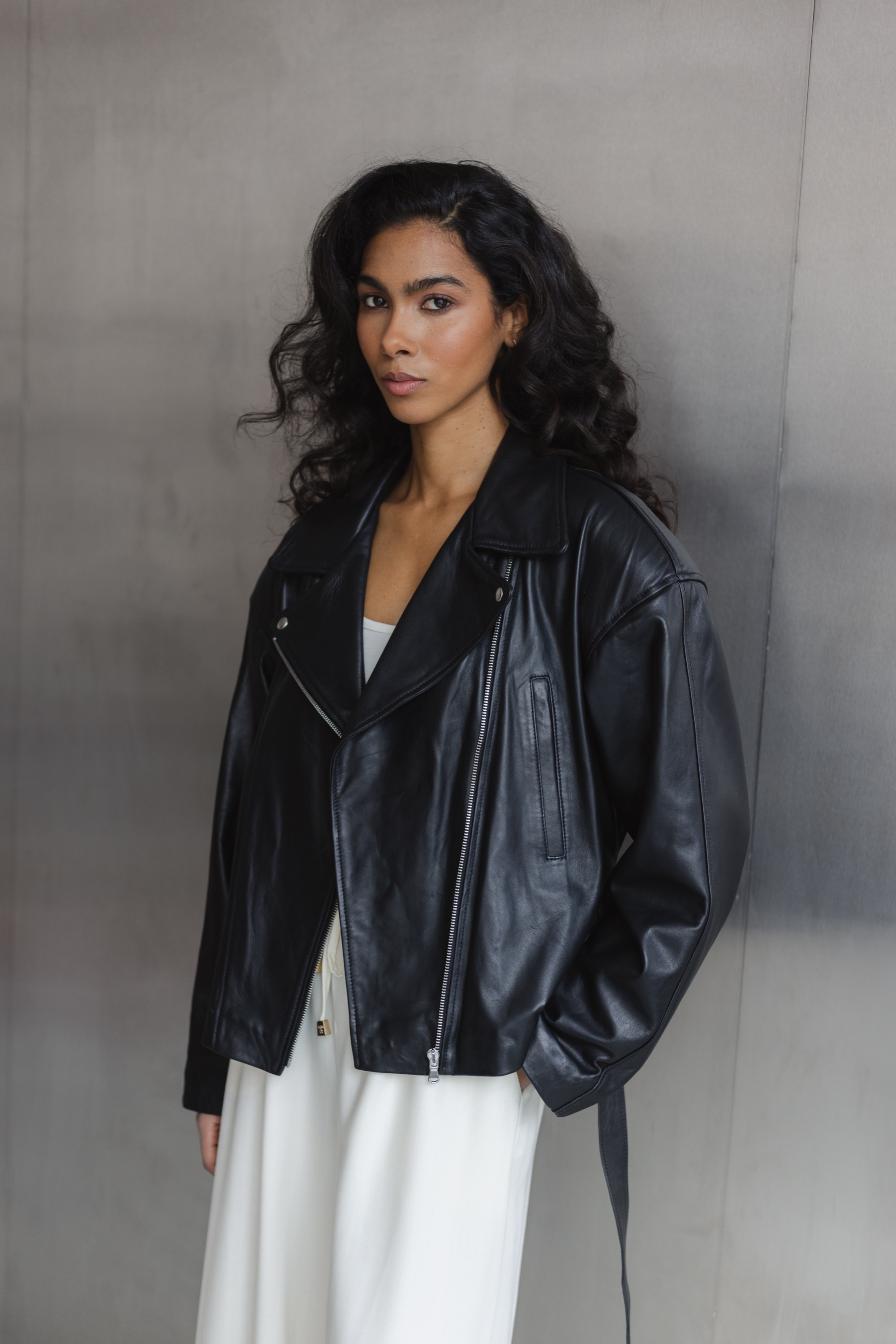 Patrice Kurtka Skórzana Z Wiązaniem Czarna
