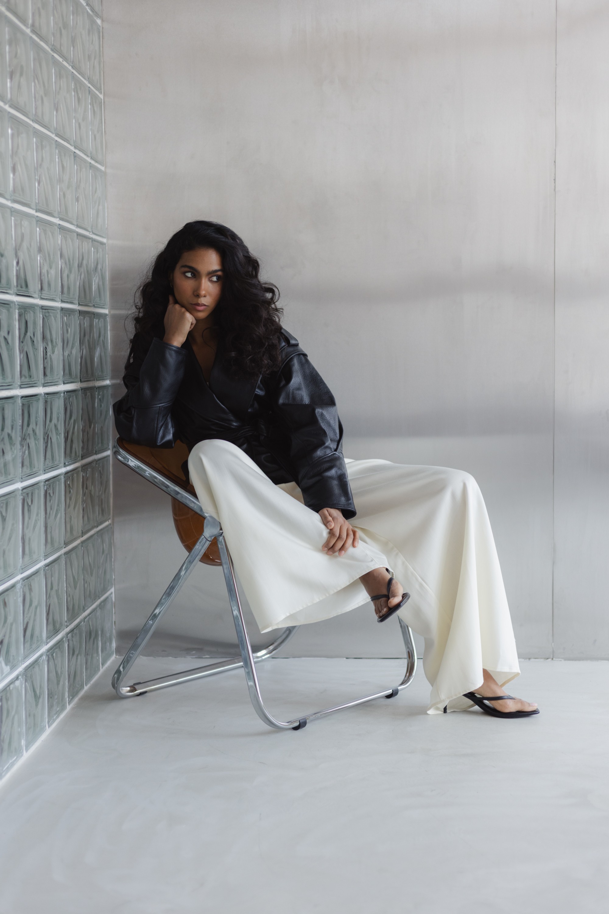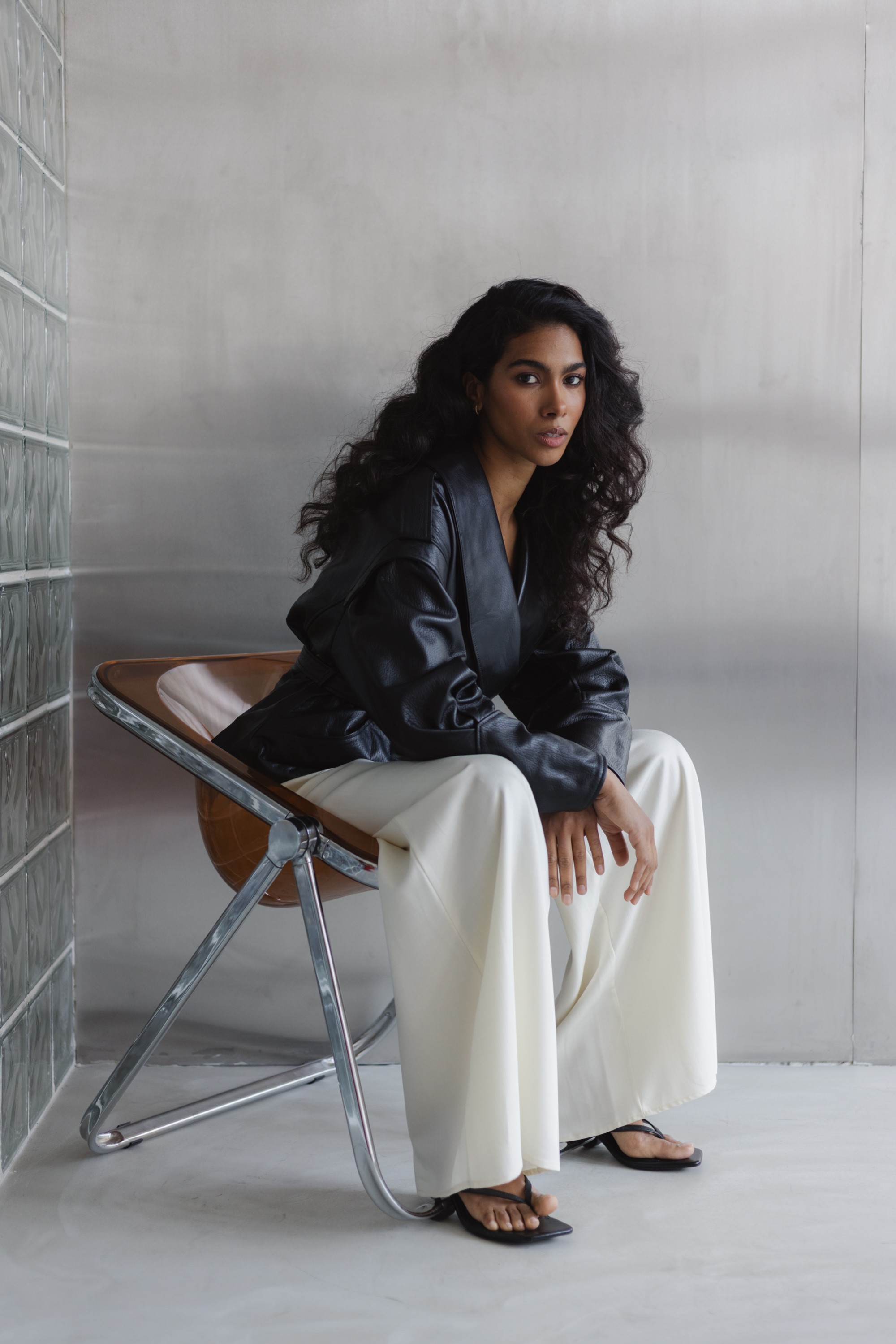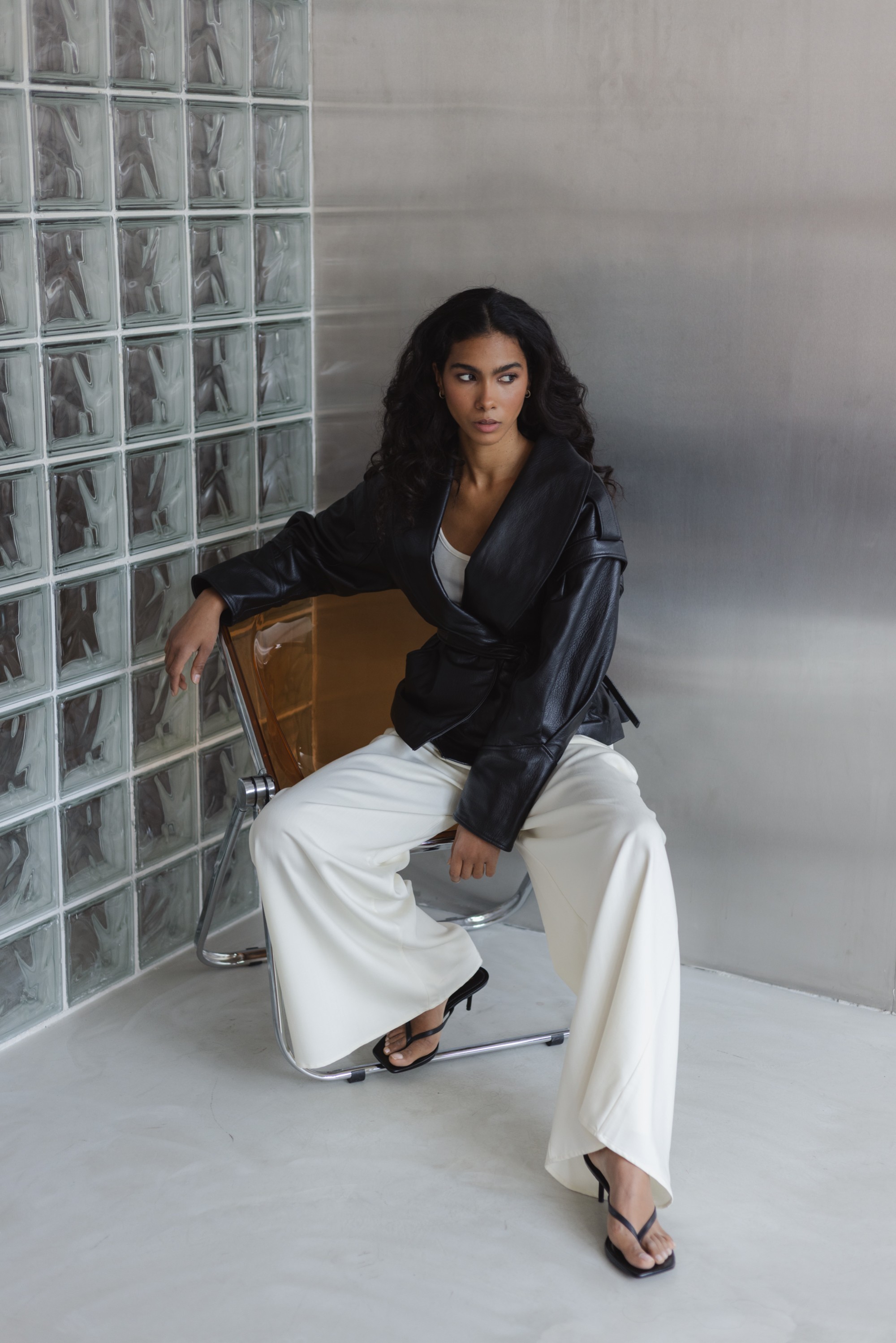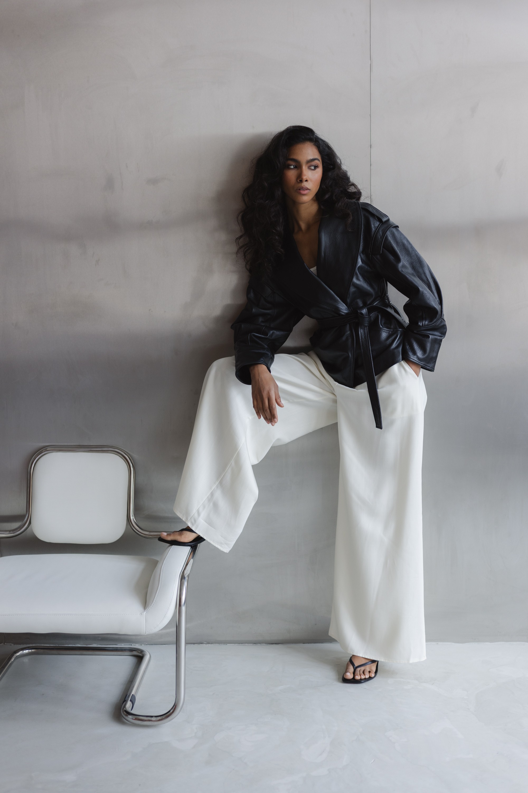 Stylowa kurtka wykonana z wysokiej jakości skóry naturalnej, która łączy nowoczesny design z ponadczasową klasyką. Model o lekko oversize’owym kroju z wyraźnie zaznaczoną linią ramion i szerokimi klapami nadaje sylwetce charakteru, a pasek w talii pozwala na indywidualne dopasowanie i podkreślenie kobiecej figury.