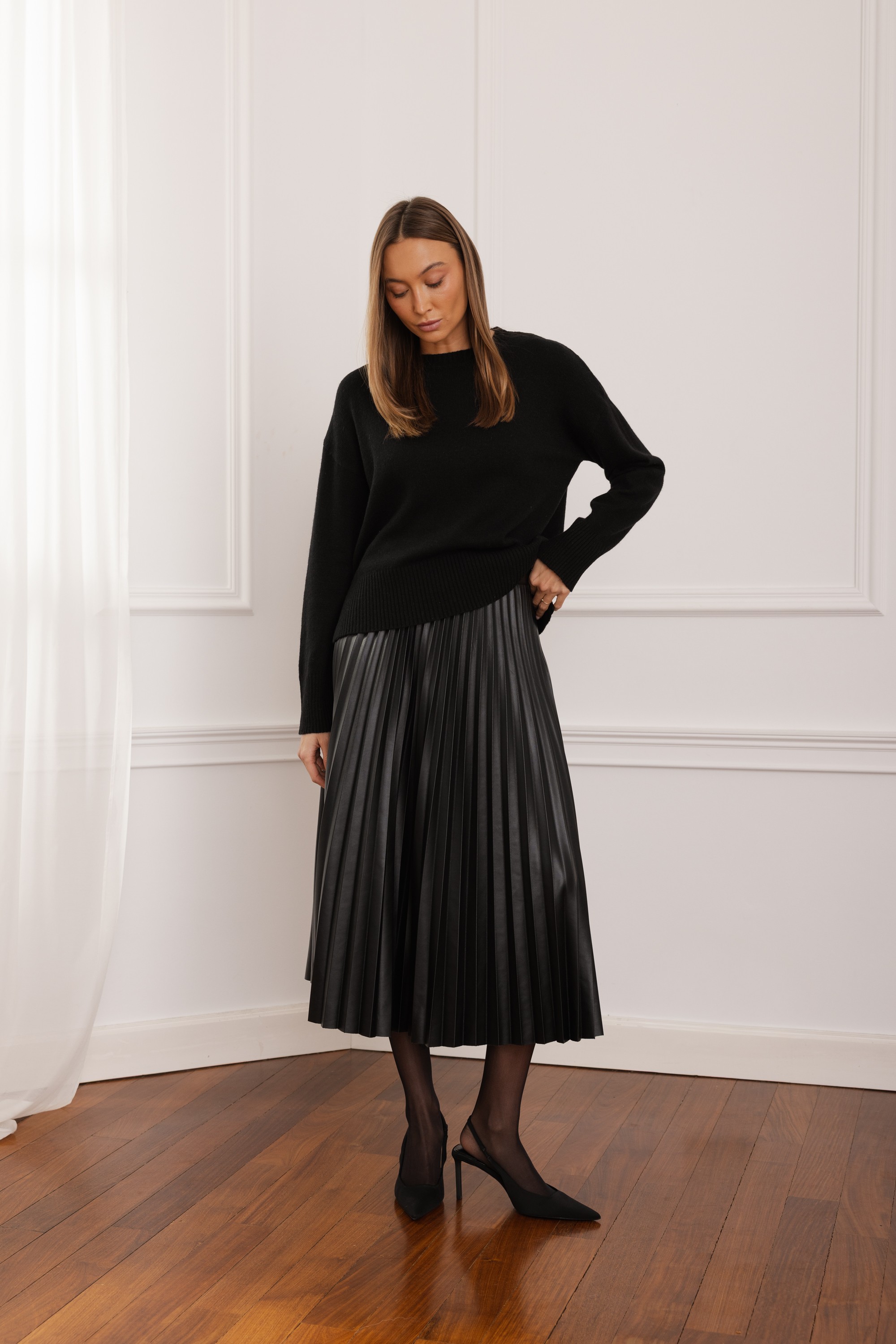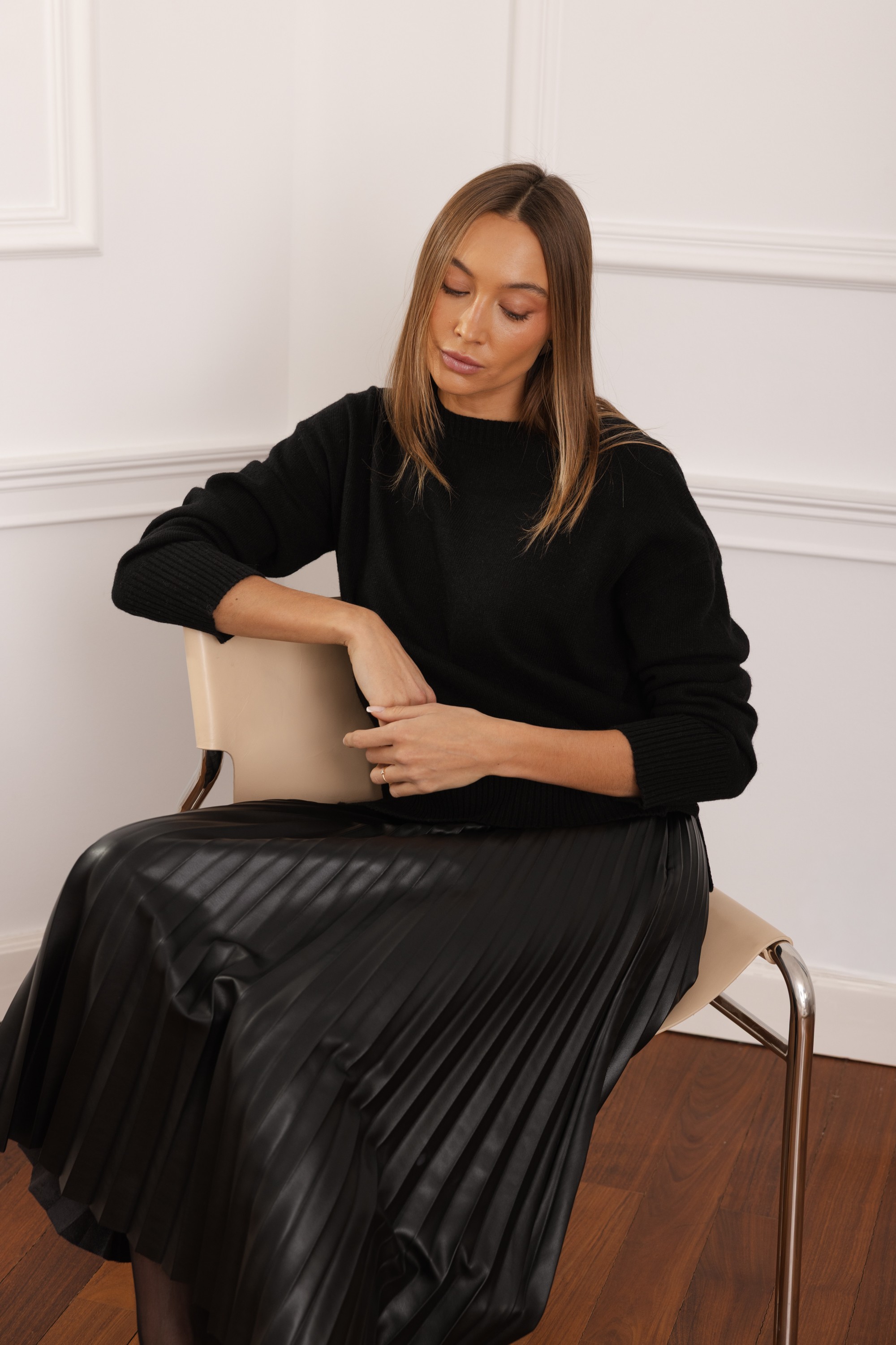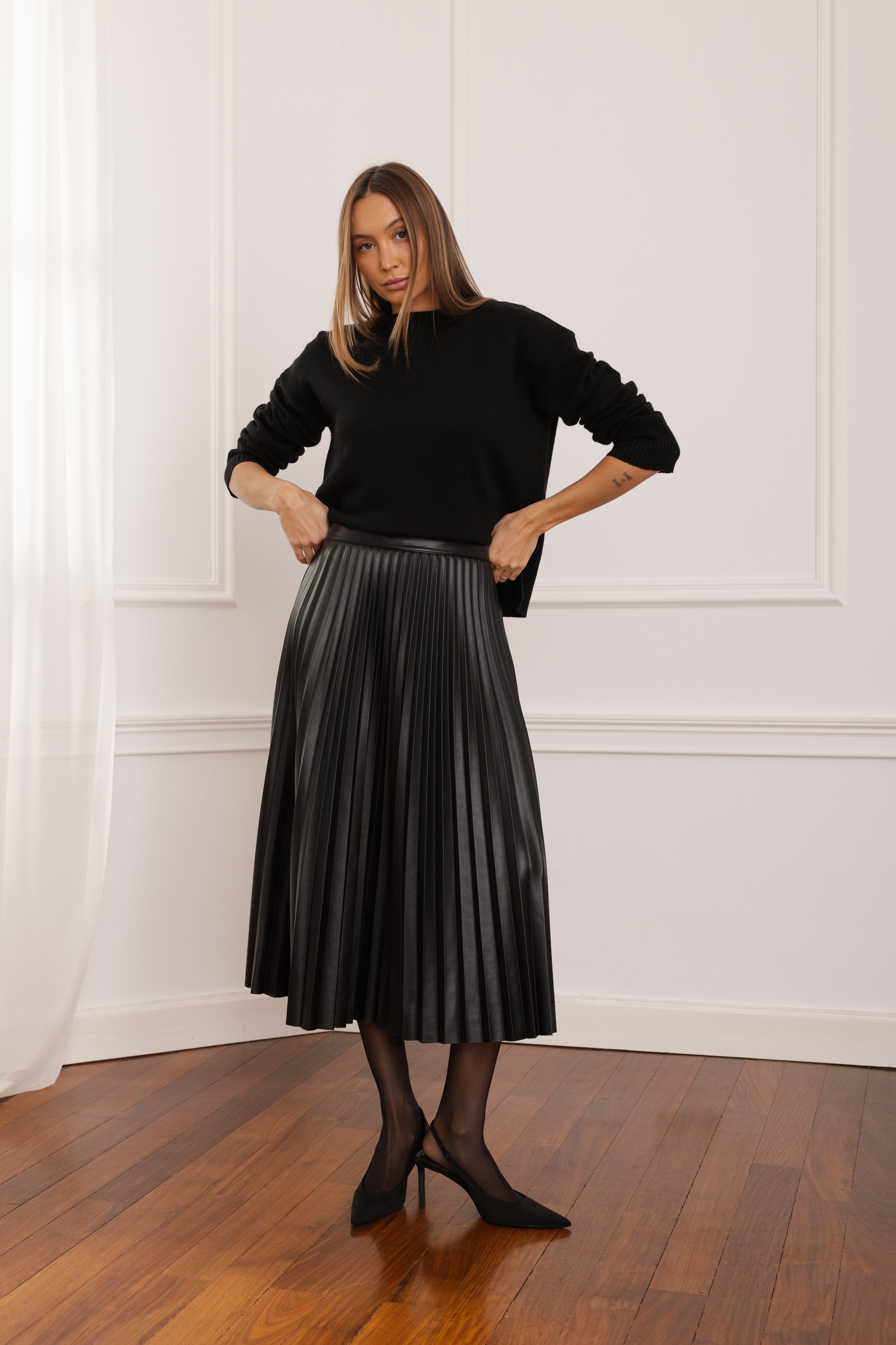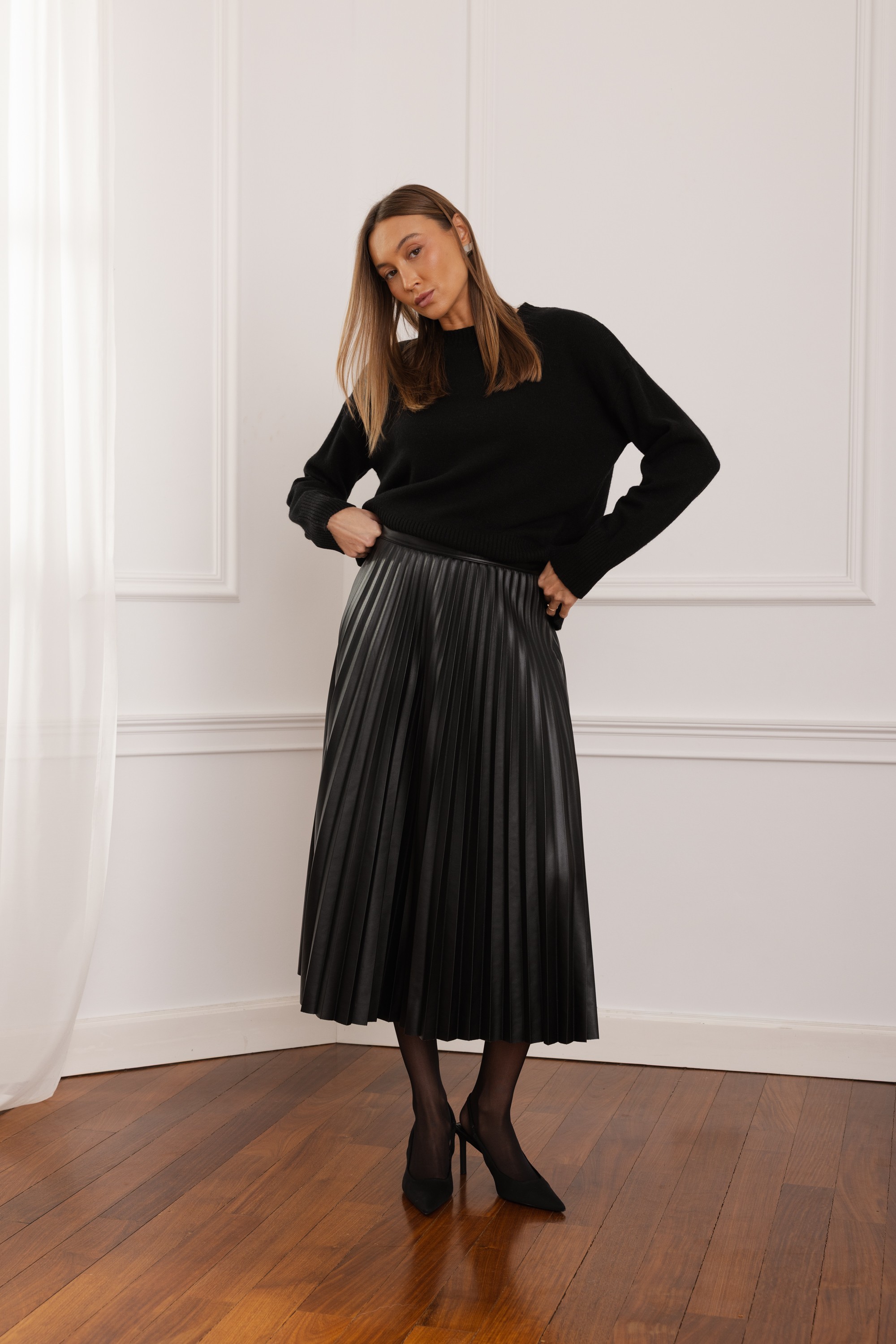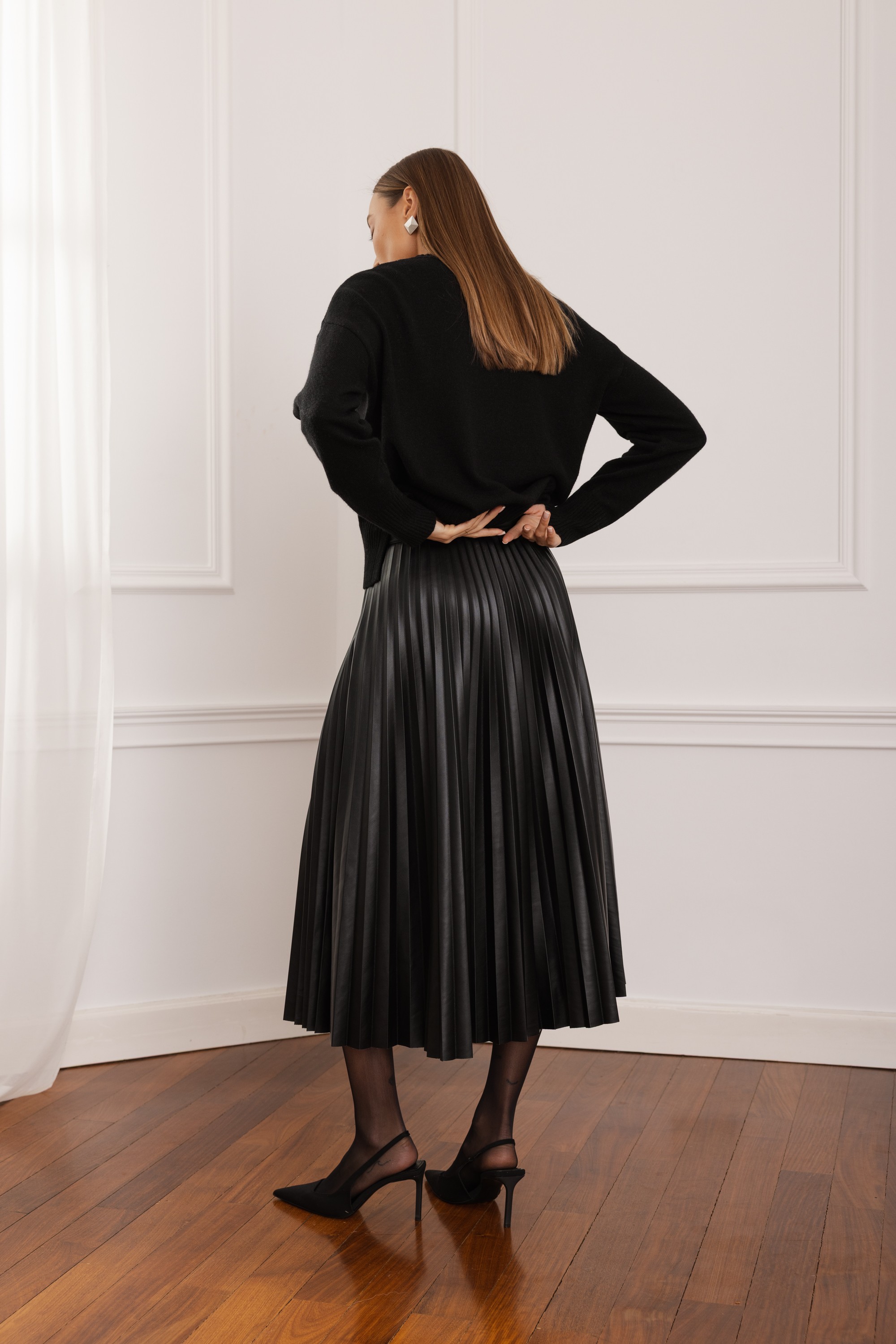 Spódnica Selma to połączenie elegancji i nowoczesnej formy. Wykonana z wysokiej jakości eko skóry, zachwyca perfekcyjnymi plisami, które pięknie pracują przy każdym ruchu. Jej długość midi nadaje stylizacji wyrafinowanego charakteru, a ponadczasowy fason sprawia, że świetnie sprawdzi się zarówno w codziennych zestawach, jak i w bardziej efektownych, wieczorowych lookach. Idealna dla kobiet, które cenią wyraziste, a jednocześnie niezwykle stylowe elementy garderoby.