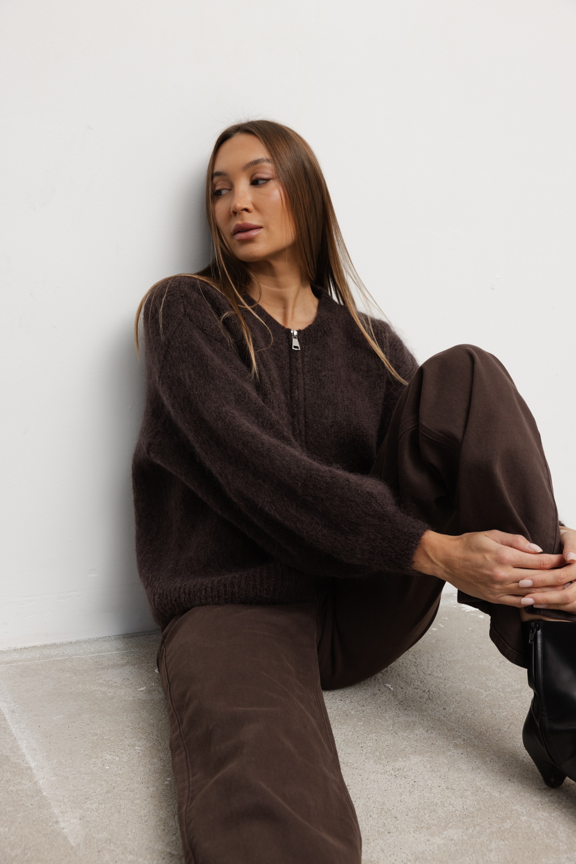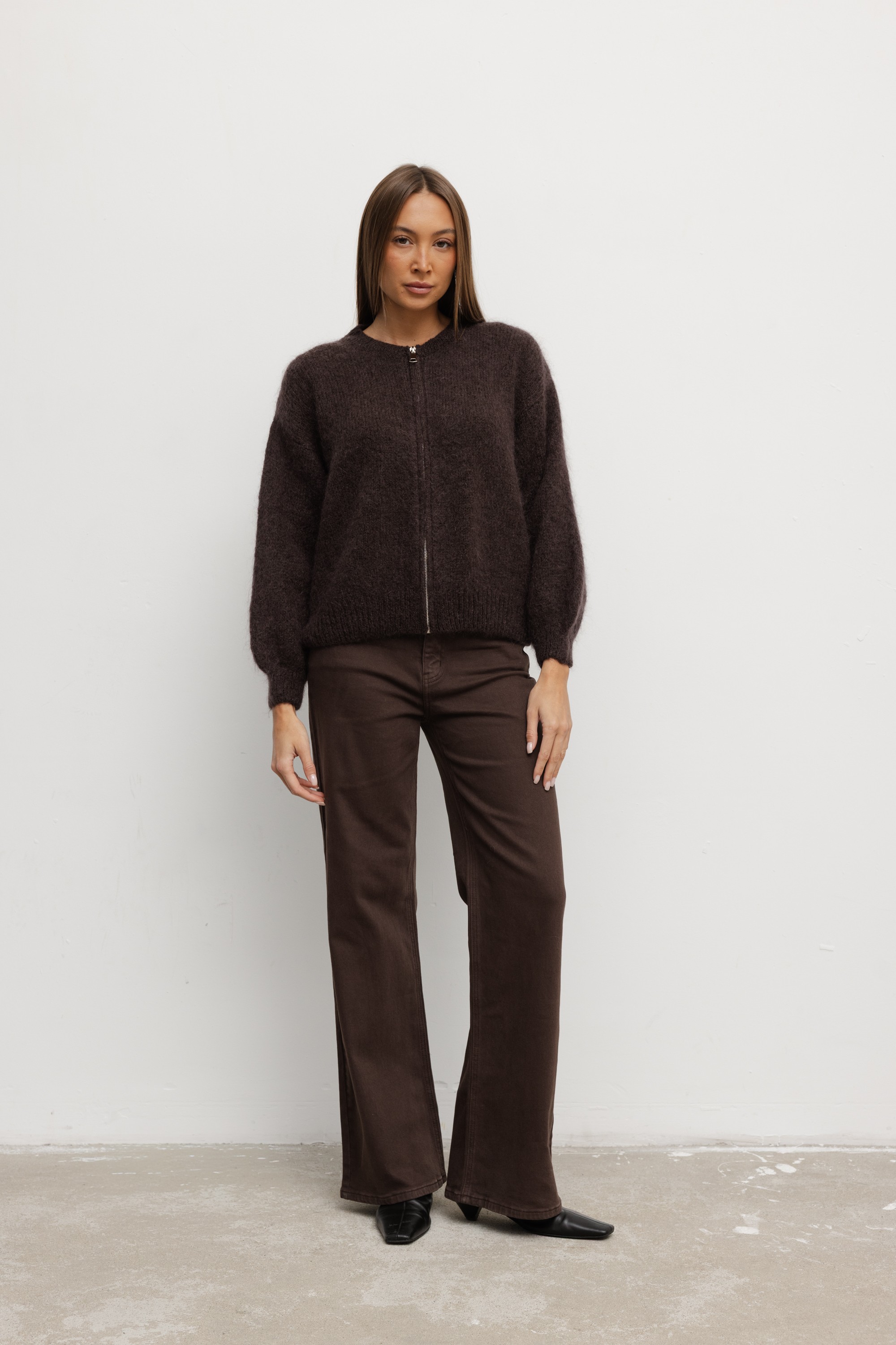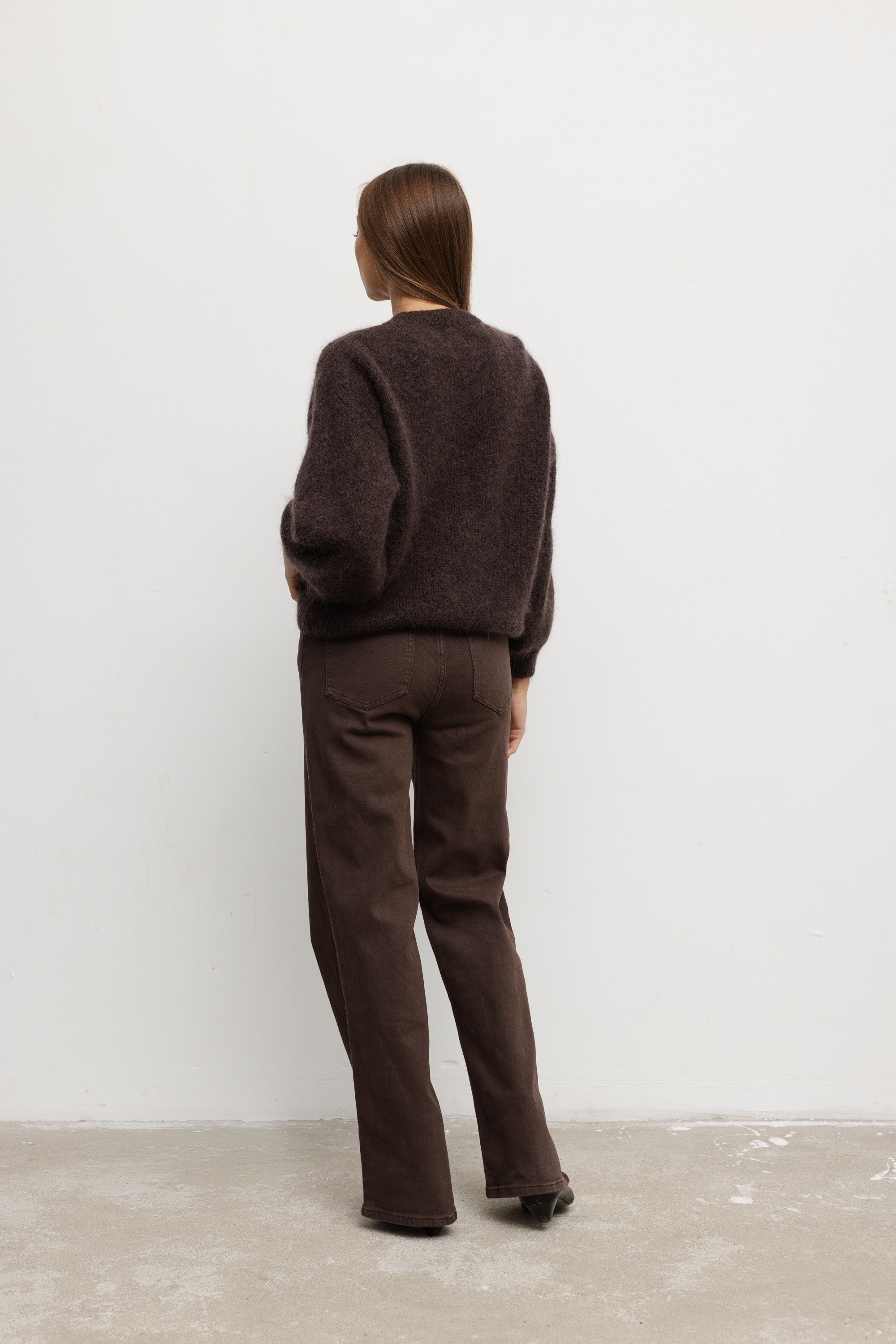 W3368 Spodnie Jeansowe Wide Leg High Weist Brąz