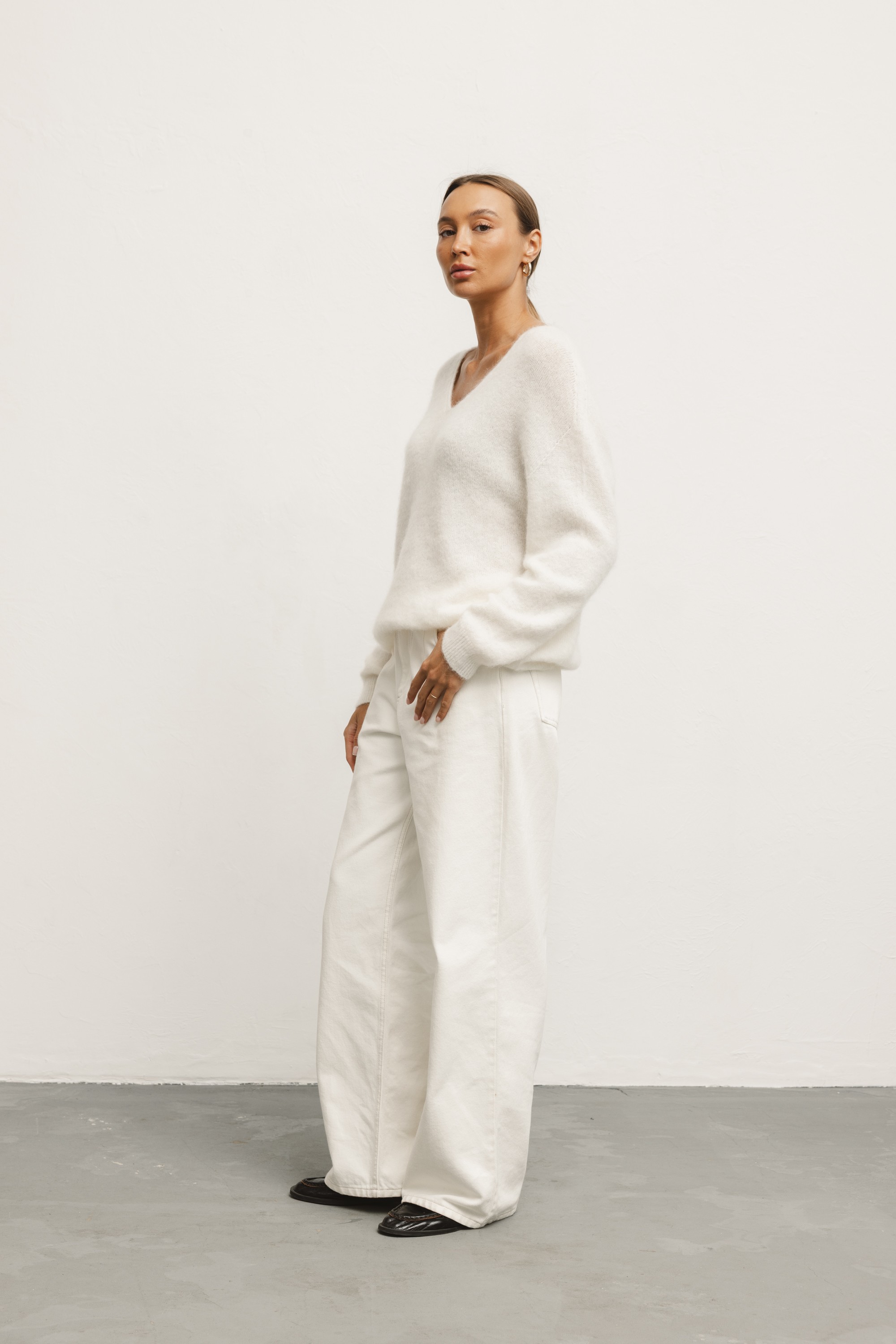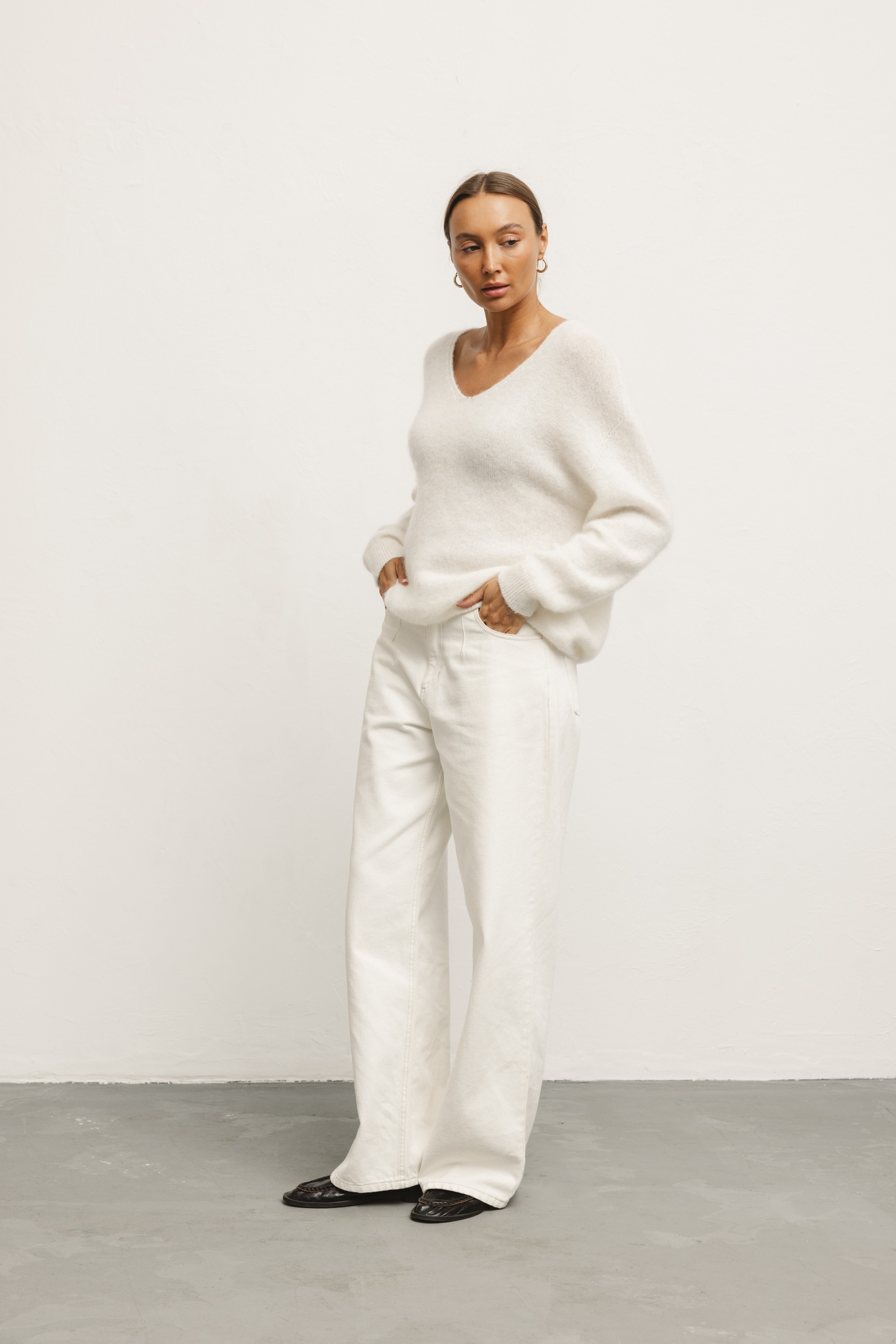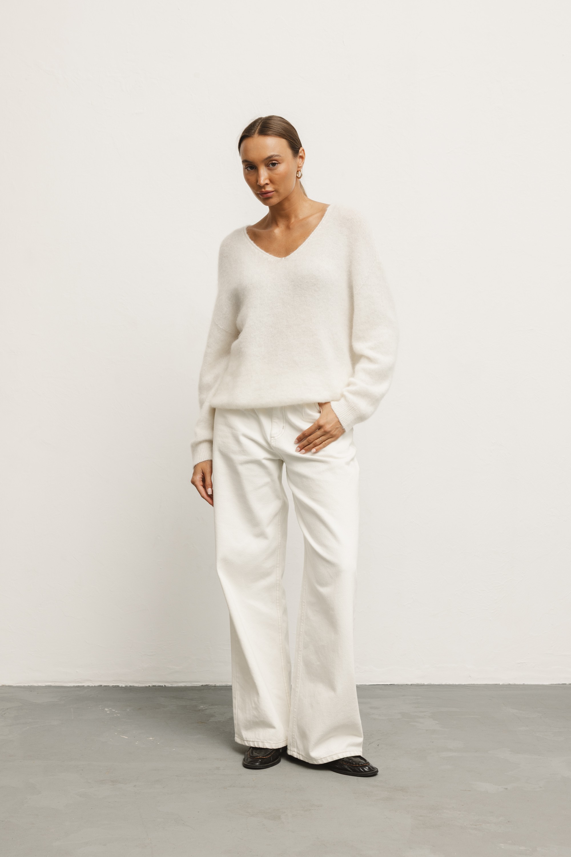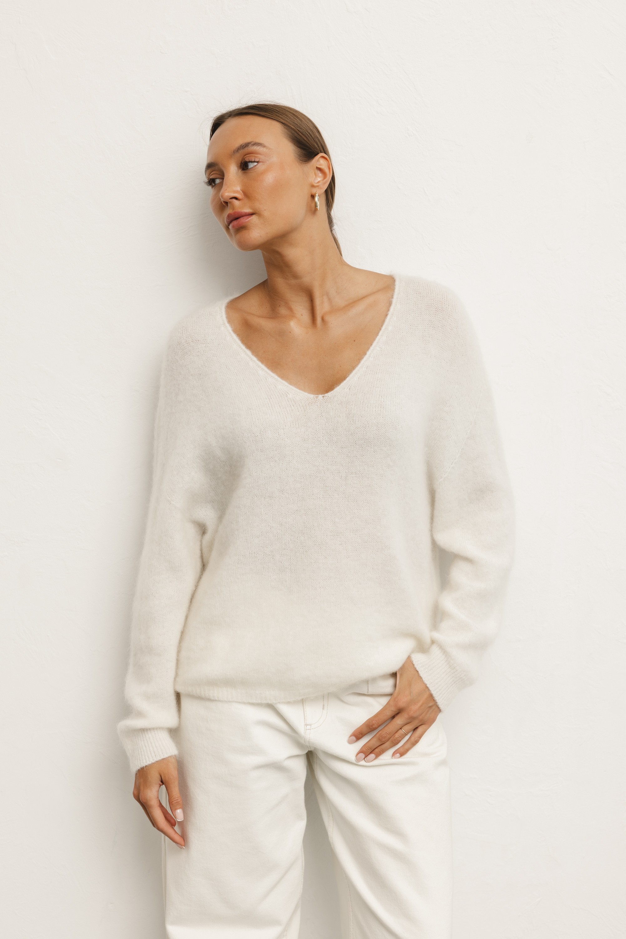 Miękki, ponadczasowy sweter o klasycznym kroju z dekoltem w serek. Wykonany z puszystej, delikatnej dzianiny, dodaje lekkości każdej stylizacji. Jego uniwersalny charakter sprawia, że pasuje zarówno do eleganckich spodni, jak i codziennych jeansów. Sweter Omar to doskonały wybór – łączy prostotę z elegancją i naturalnym wdziękiem.