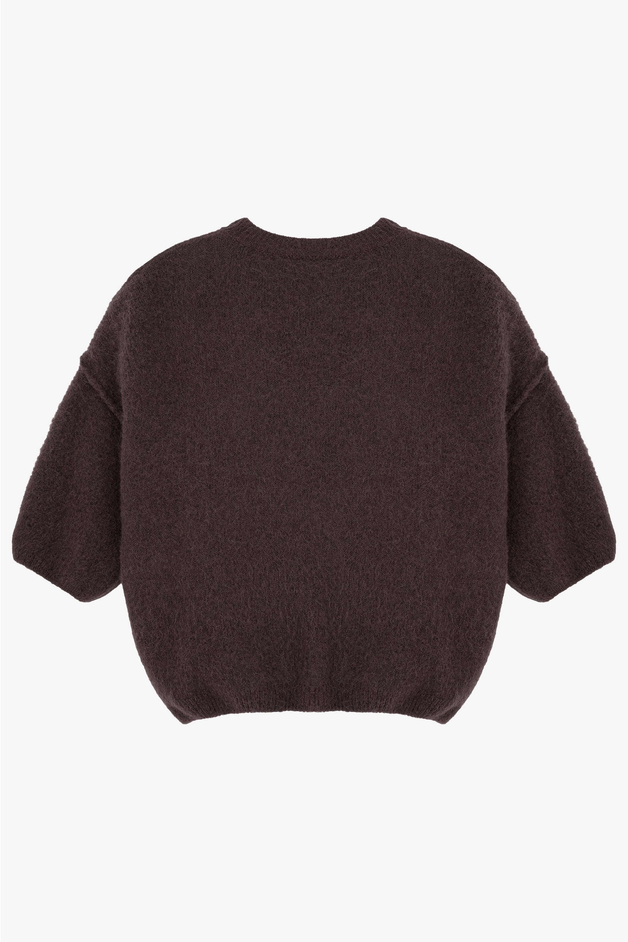 Sweter z alpaki o lekkiej, delikatnej strukturze. Prosty fason z obniżoną linią ramion i krótkim rękawem nadaje całości swobodnej elegancji. Naturalna przędza zapewnia komfort noszenia i subtelny wygląd, który łatwo wpisuje się w codzienne i bardziej dopracowane stylizacje.